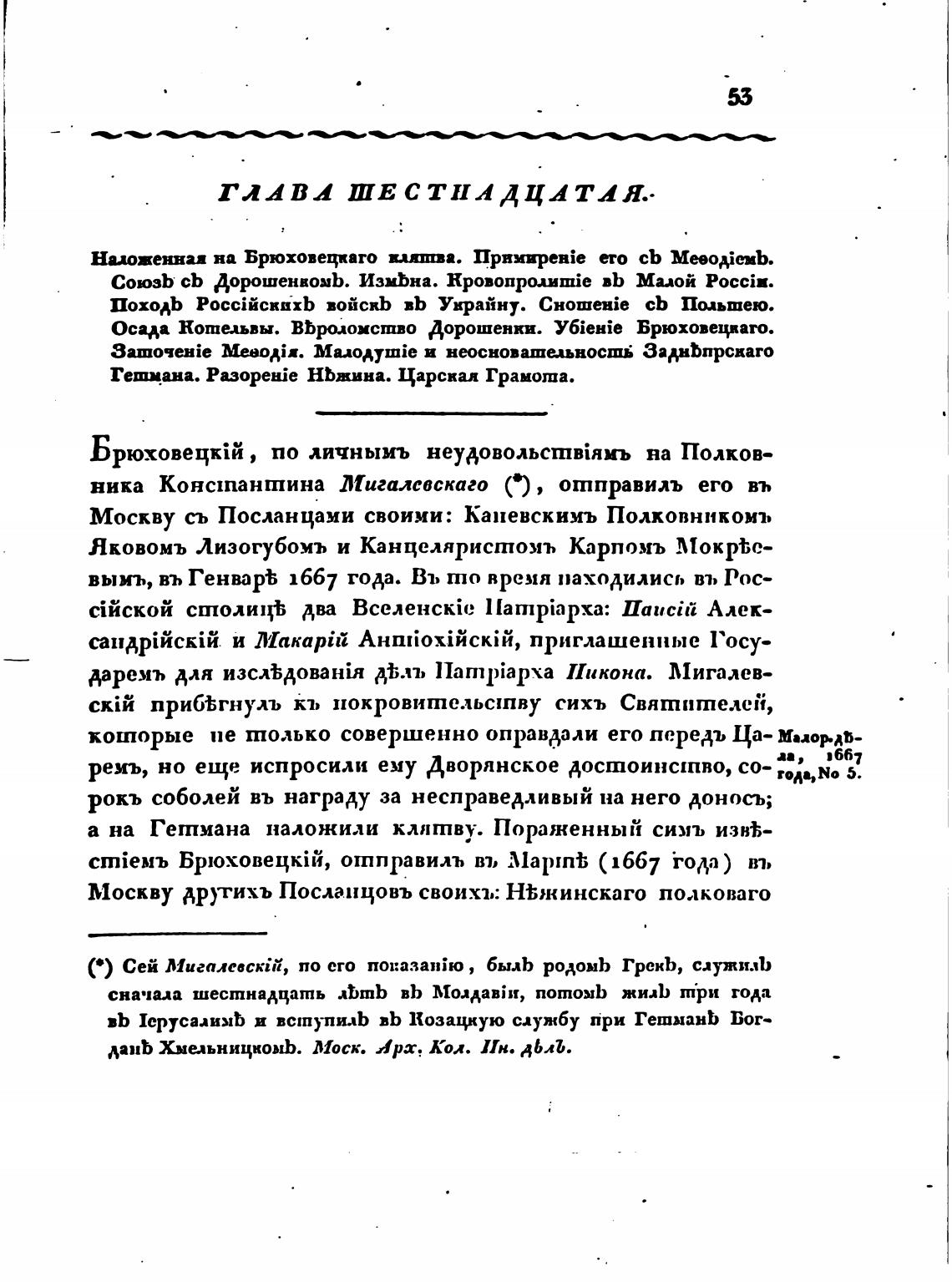 Гетмана. Разорен;е НЬжина. Царская Грамота.
