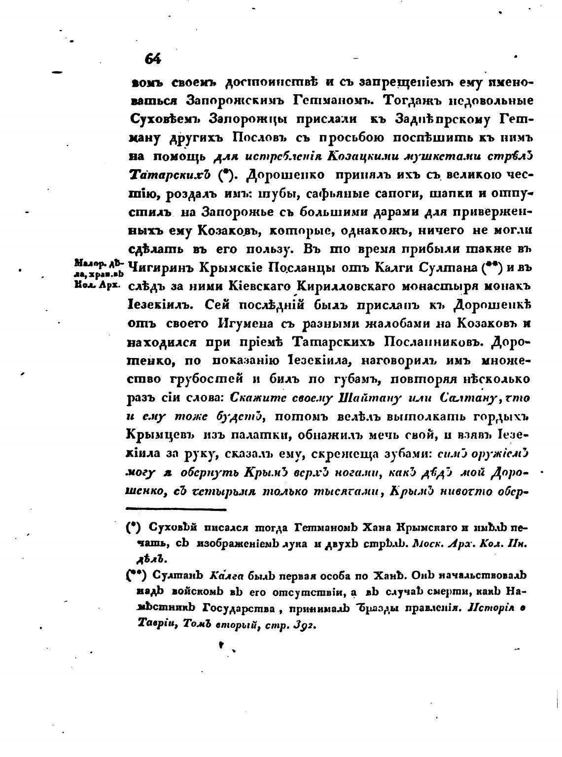 МИОР•АВ- Чигиринъ kpr»yckie Посланцы отъ Калги Султана ( о) и въ