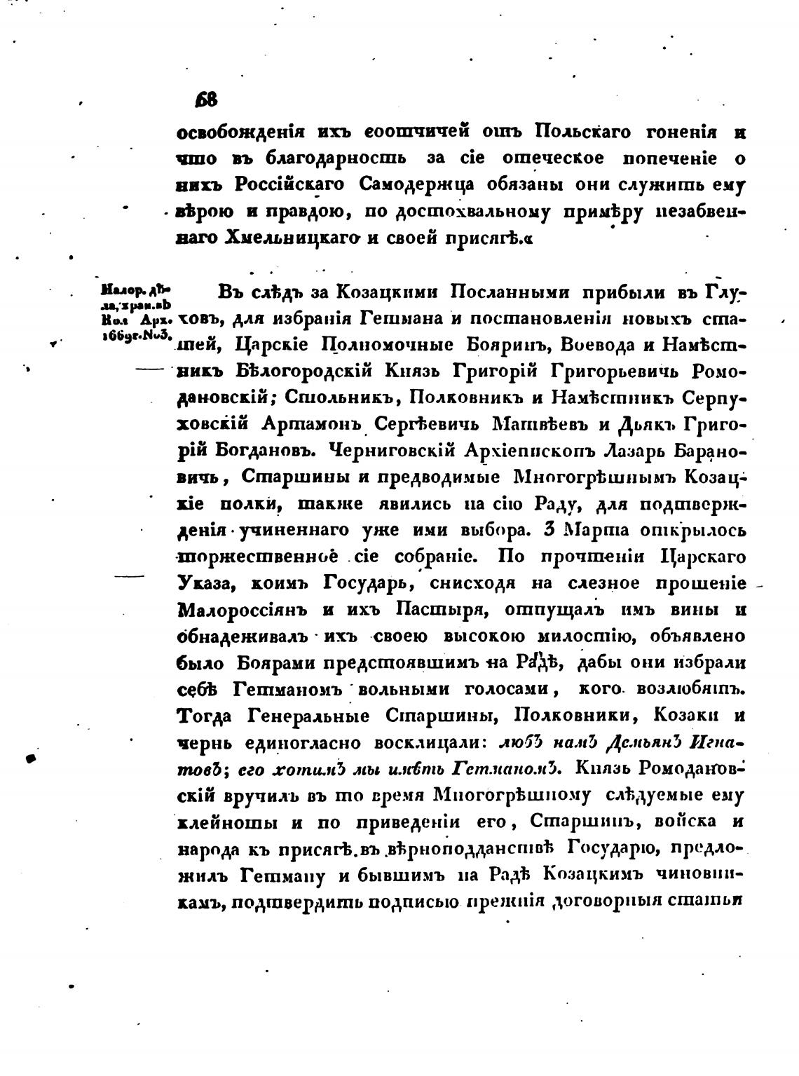 НИОР•АЬ Въ сл%дъ за Козацкнии Посланными прибыли въ Глу_-