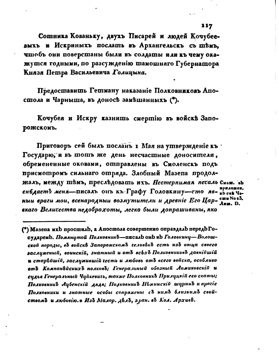 С) Мазепа ихЬ просшилЬ, а Апостола совершенно оправдал перефГо—