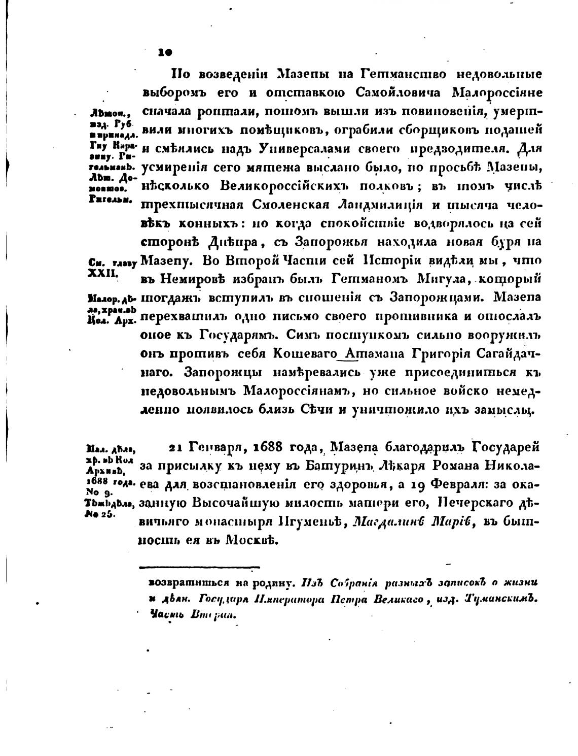 21 Горваря, 1688 года „ Мазеп? благодарџлъ Государей