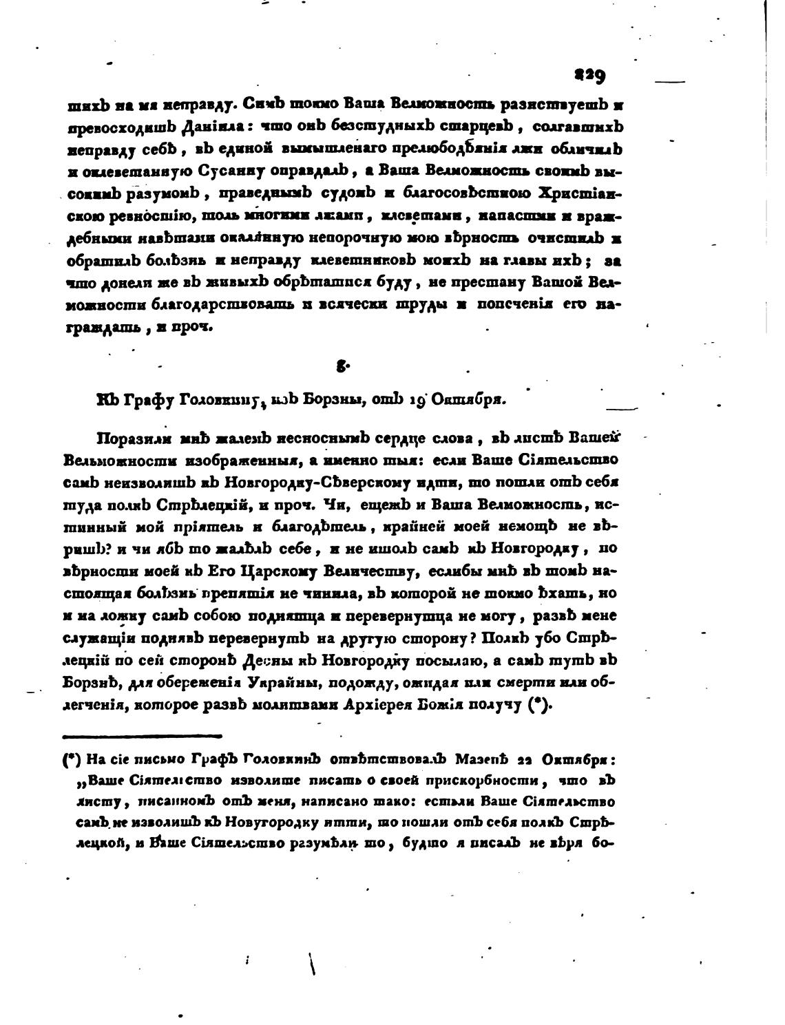 С) На cie письмо ГрафЪ ГоловвпнЬ отвЬтешвовалЪ МазепЬ Овшябрв :