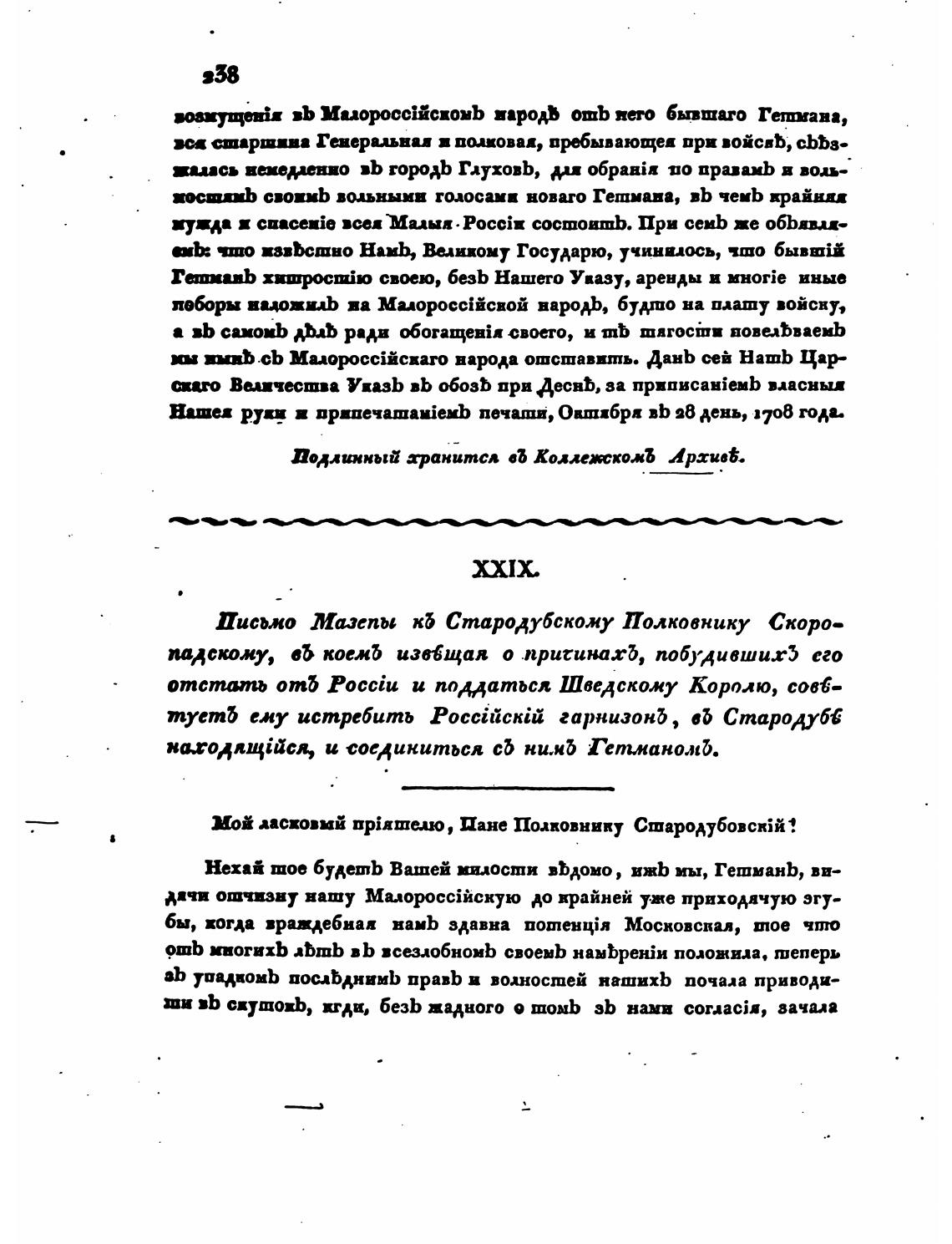 Письмо Мазепы кб Старовубскожу Полковнику Скоро—