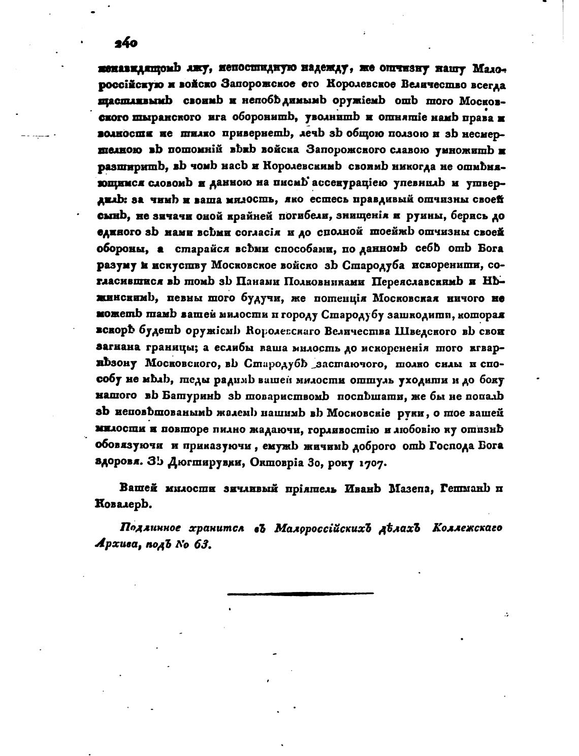 Вашей мхиосши звчлцвыЙ npiaxue.tb ИванЬ Мазепа, ГетманЬ п