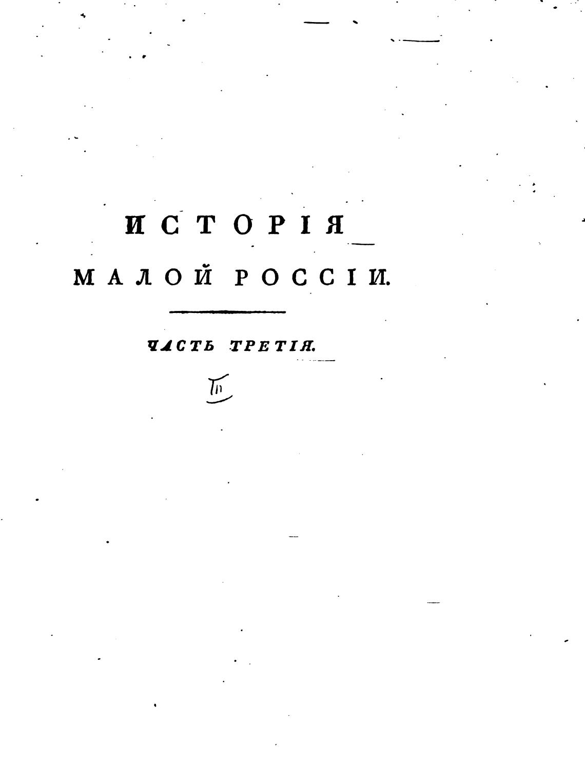 Ч. 3. История Малой России, со времен присоединения оной к Российскому государству при царе Алексее Михайловиче, с кратким обозрением первобытного состояния сего края. - Бантыш-Каменский Д. Н.