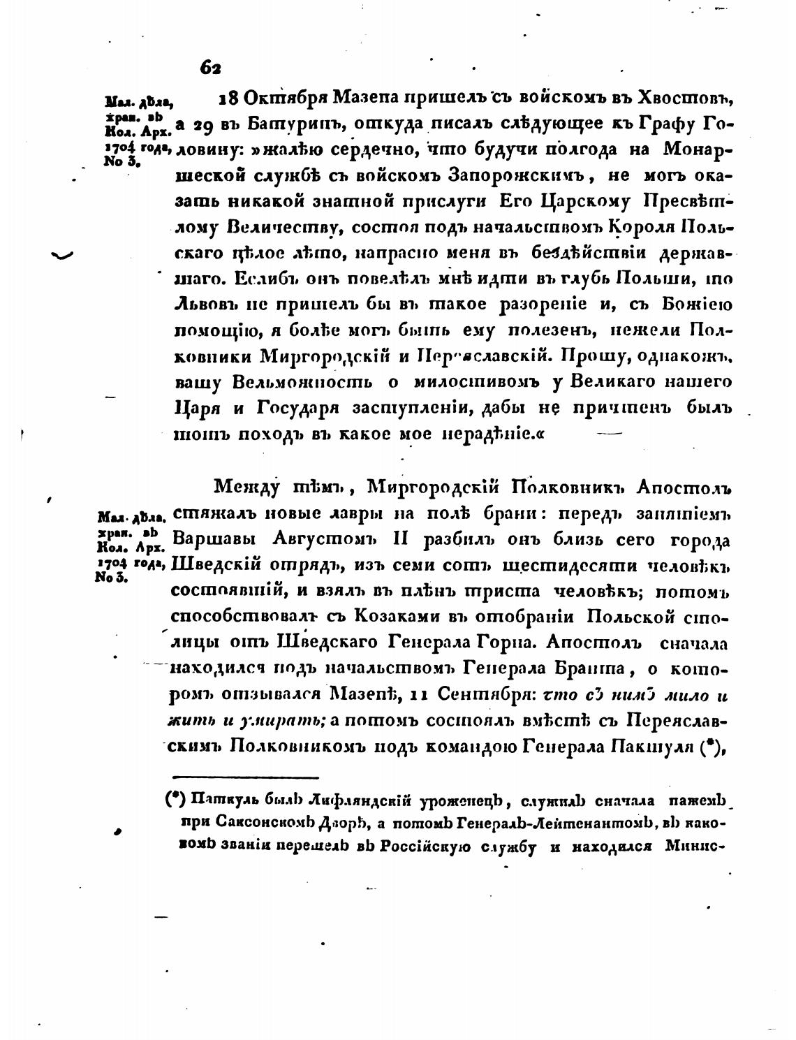 лицо: отъ Шведскаго Генерала Горна. Апостоль сначала