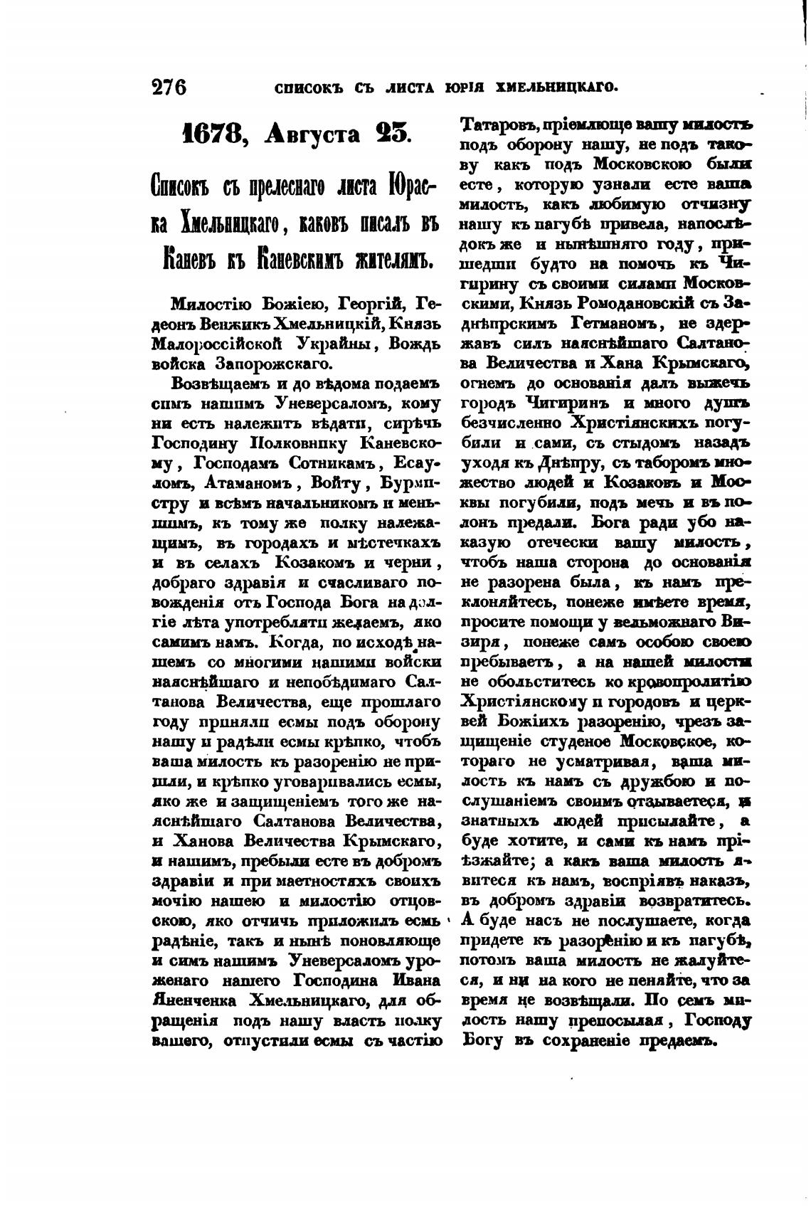 СПИСОКЪ СЪ лИСтД ЮРШ ХМЕЛЬНИЦКАГО.