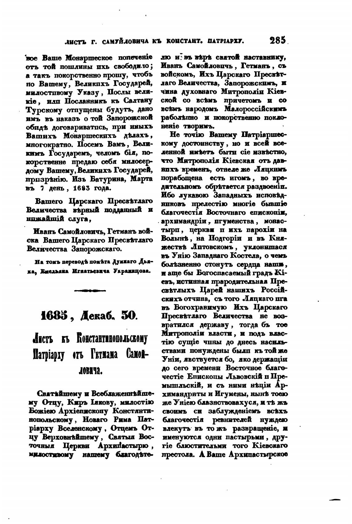 ЛИСТЬ Г. САМУЙЛОВИЧЛ КЬ КОНСТАНТ. ПАТРИАРХУ.