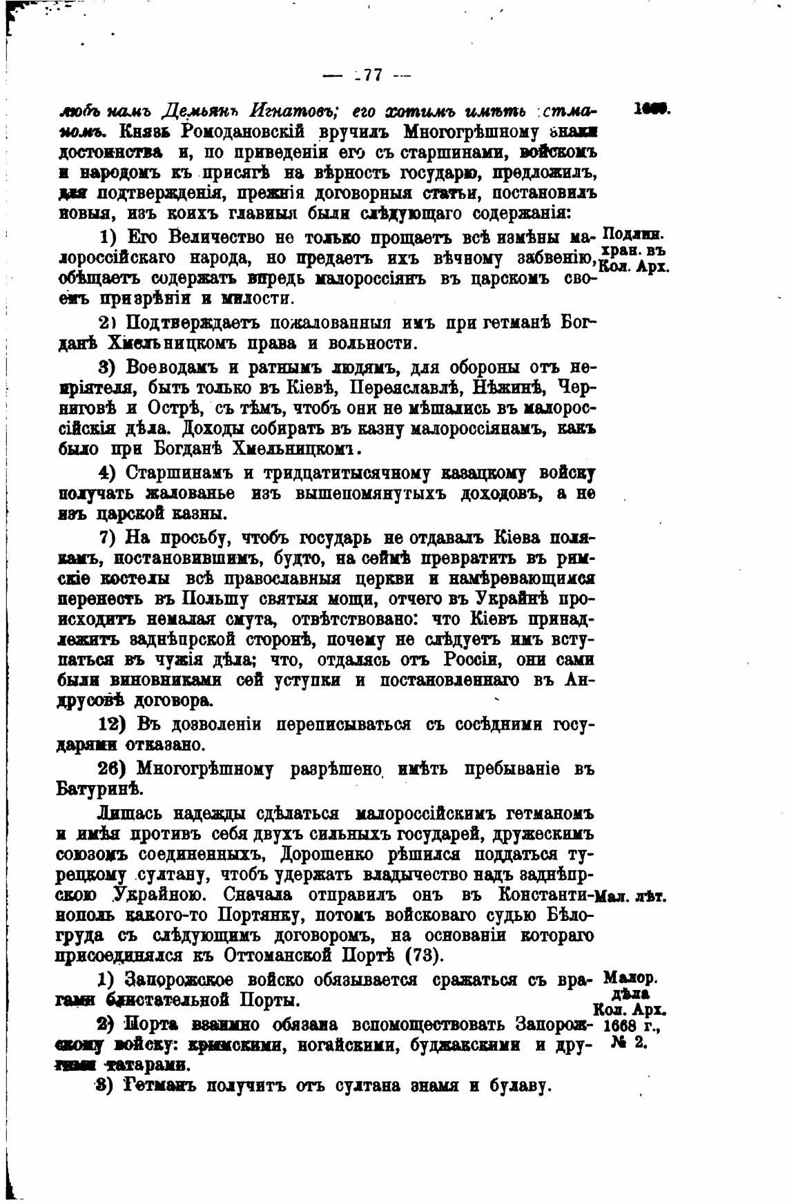 2) Порта взаипо вспомоществовать Запорож- 1668 г.,