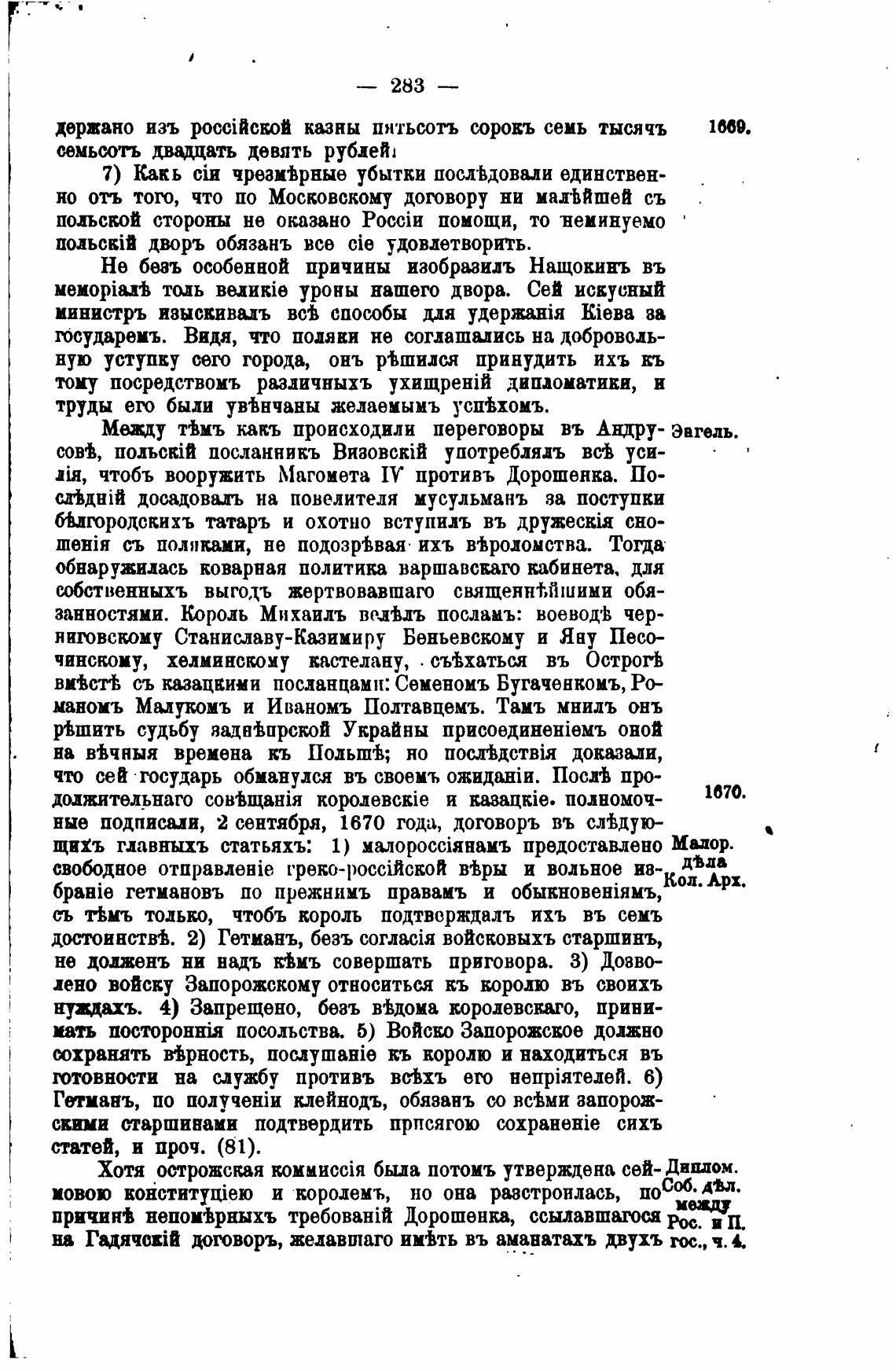 ные подписии, 2 сентября, 1670 года, договоръ въ с.“дую-