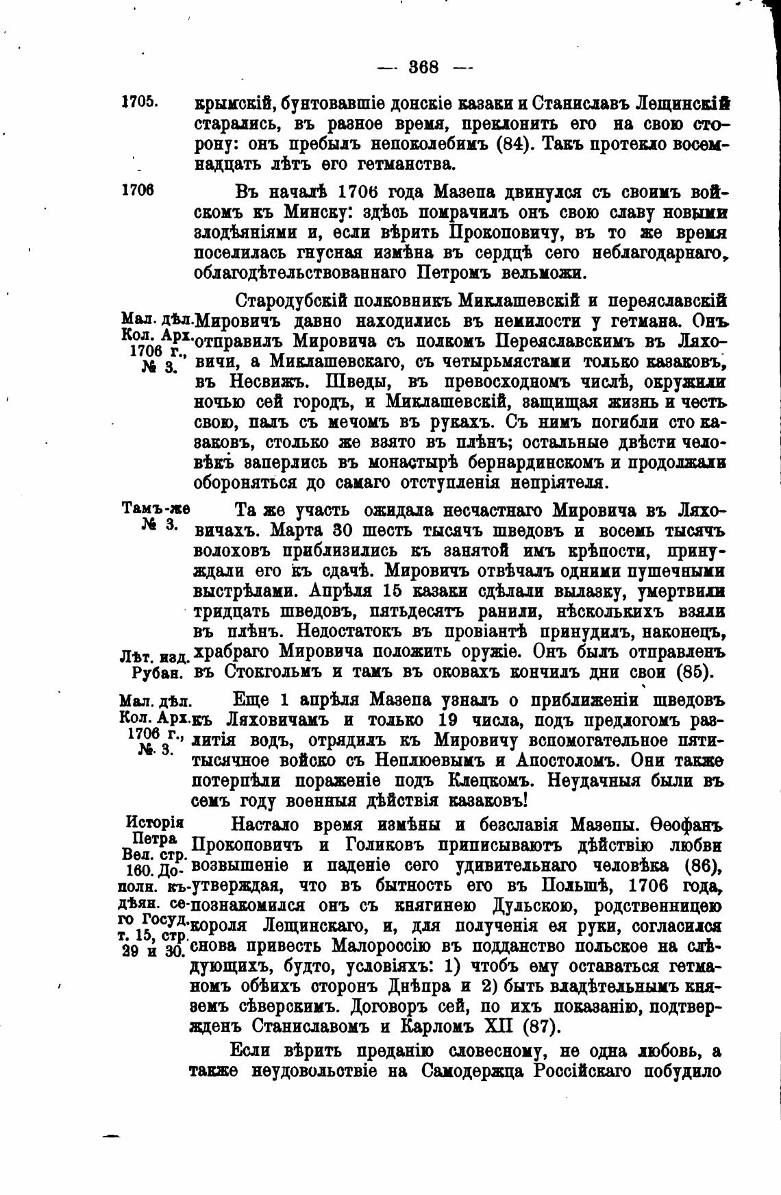 Въ начать 1706 года Мазепа двинулся съ своимъ вой-