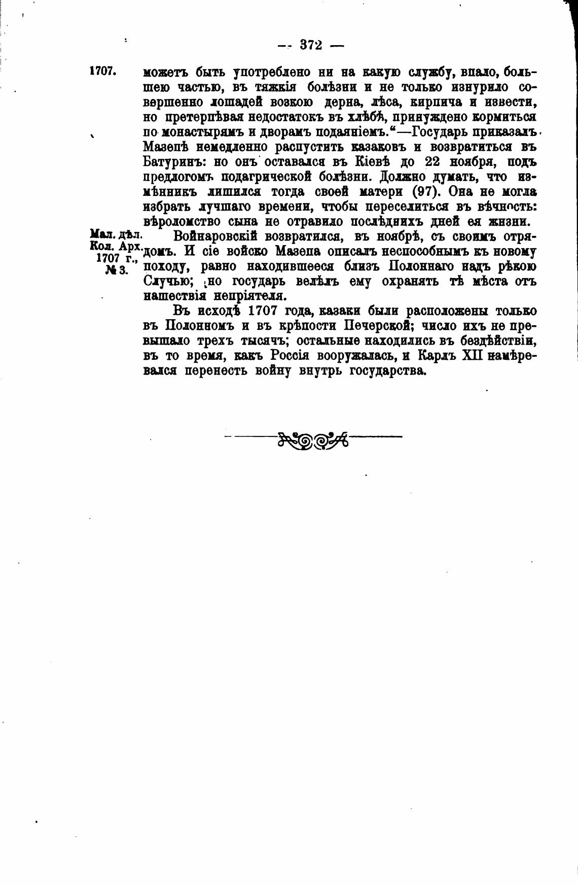 АРХ•доиъ. И cie войско Мазепа описиъ неспособнымъ кь новому