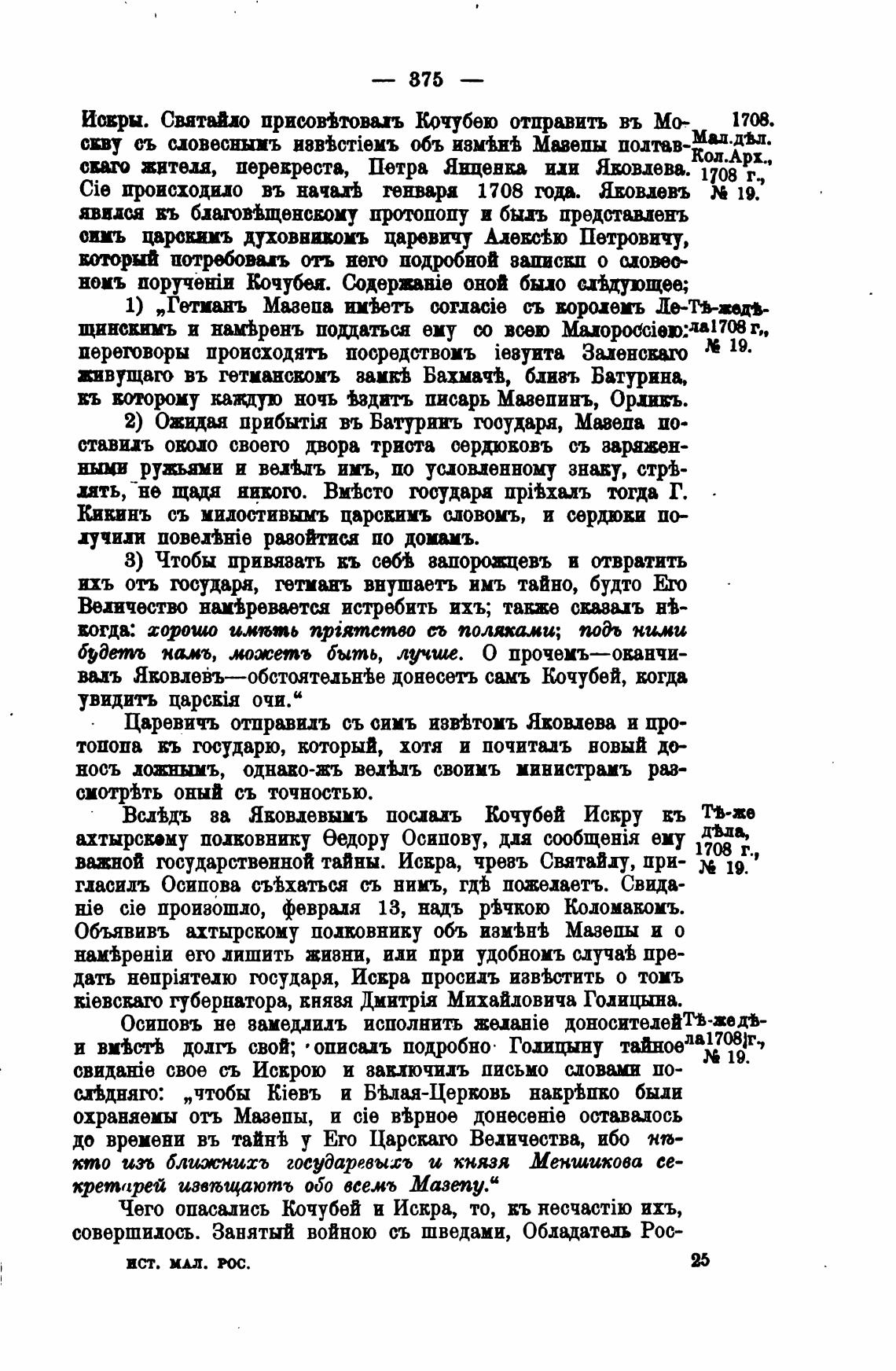 Cie происходило въ начать генвара 1708 ода. Ы.ковдевъ 19.