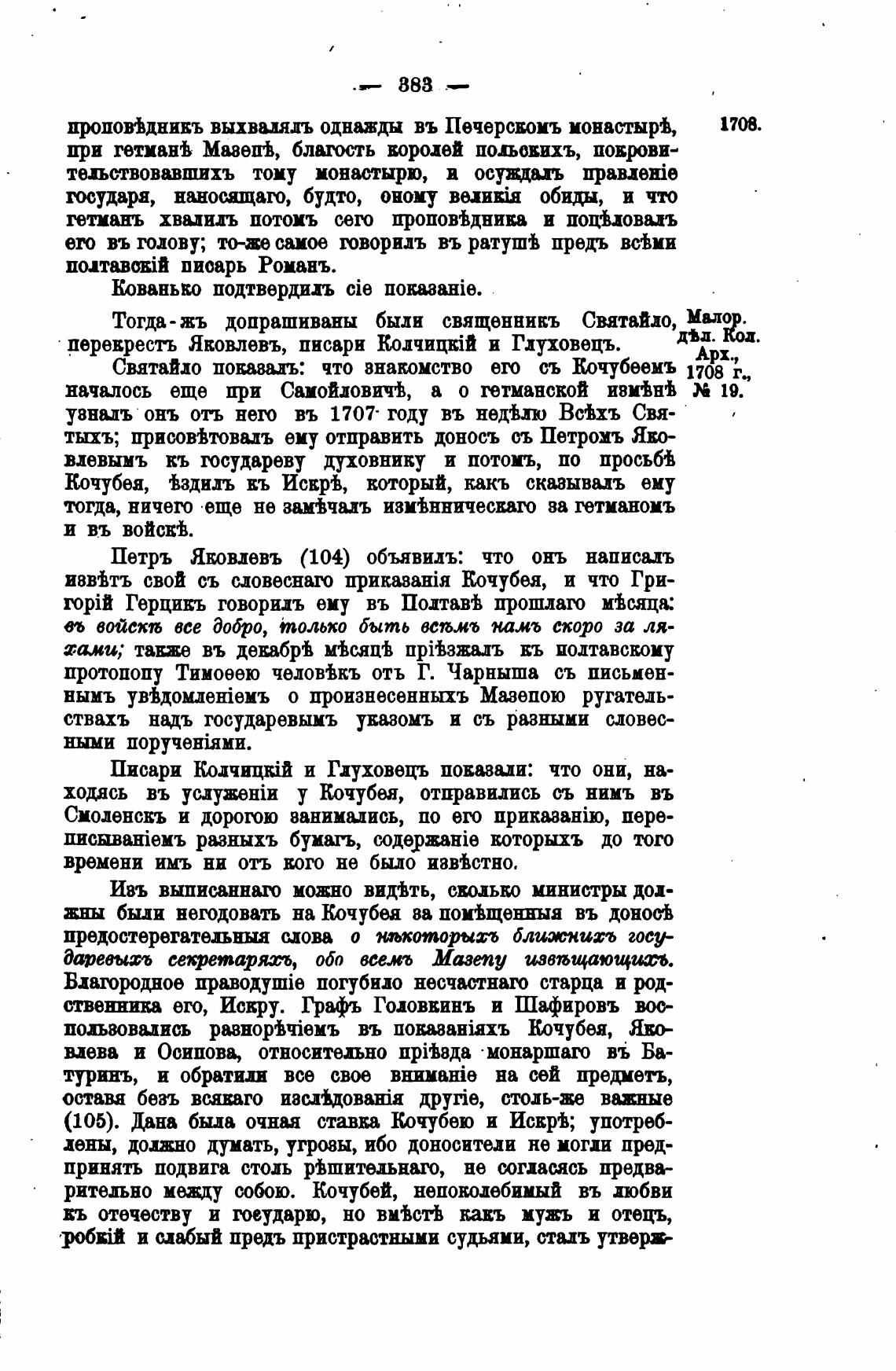 (105). Дана была очная ставва Кочубею и Искф•, употреб-