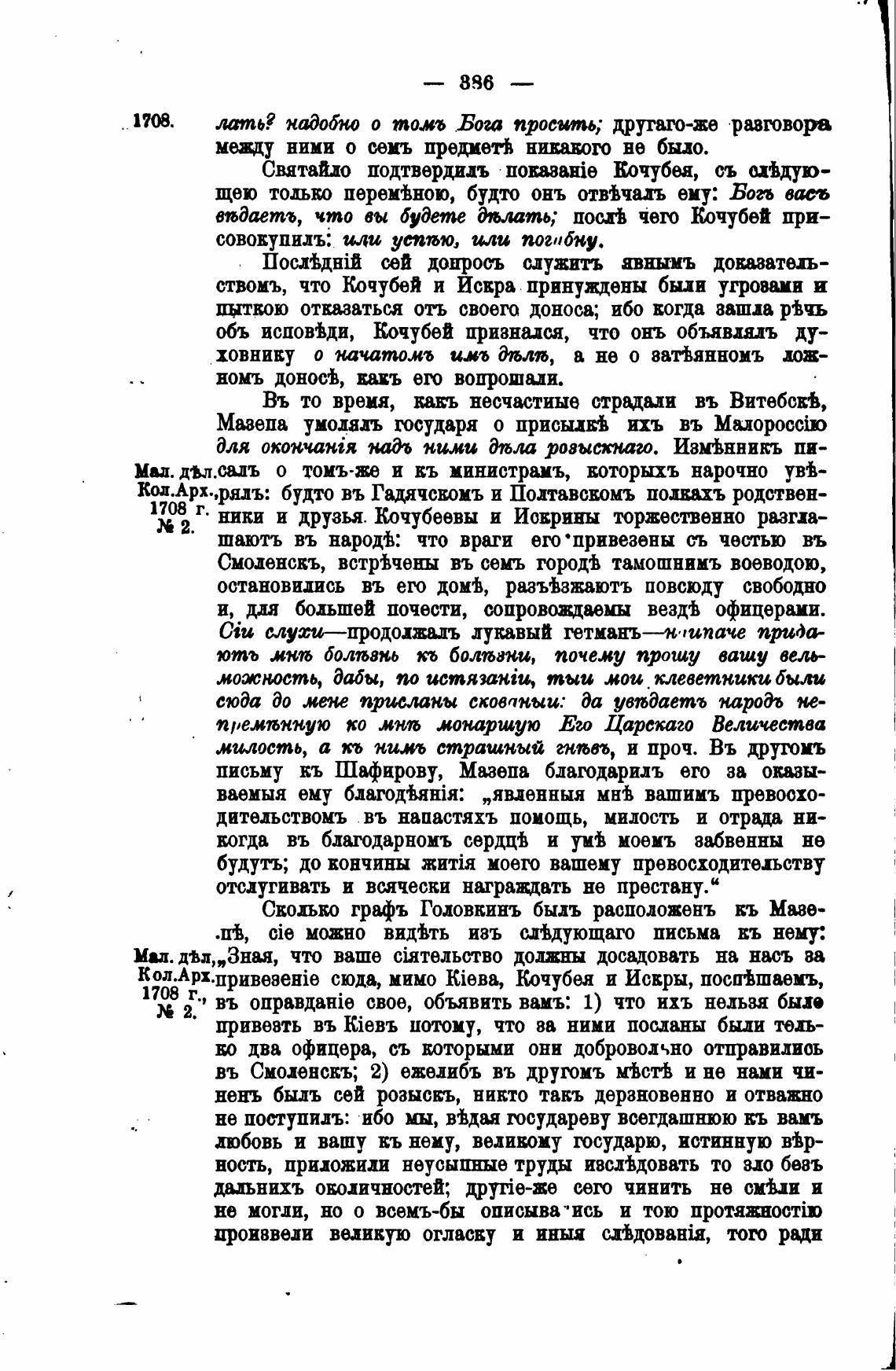 ствомъ, что Кочубей и Искра принуждены были угровами и