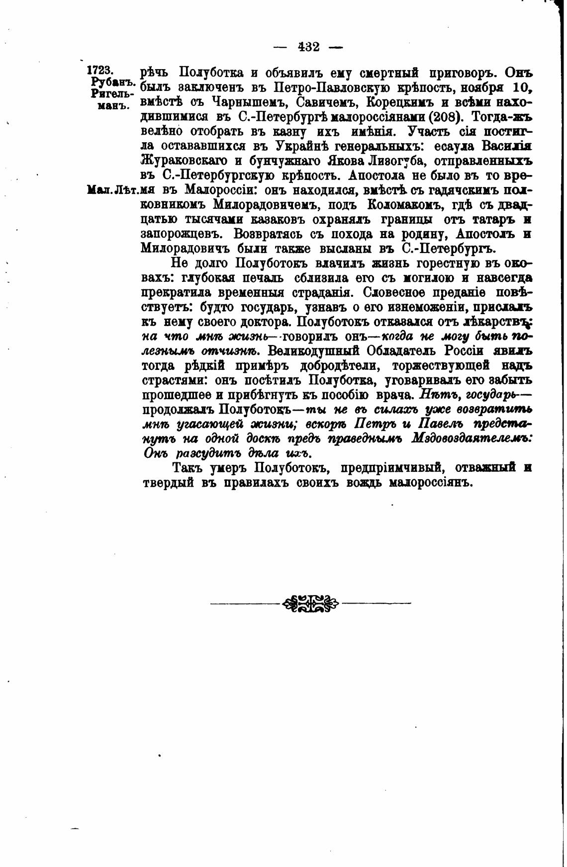 Такъ умерь Полуботокъ, и