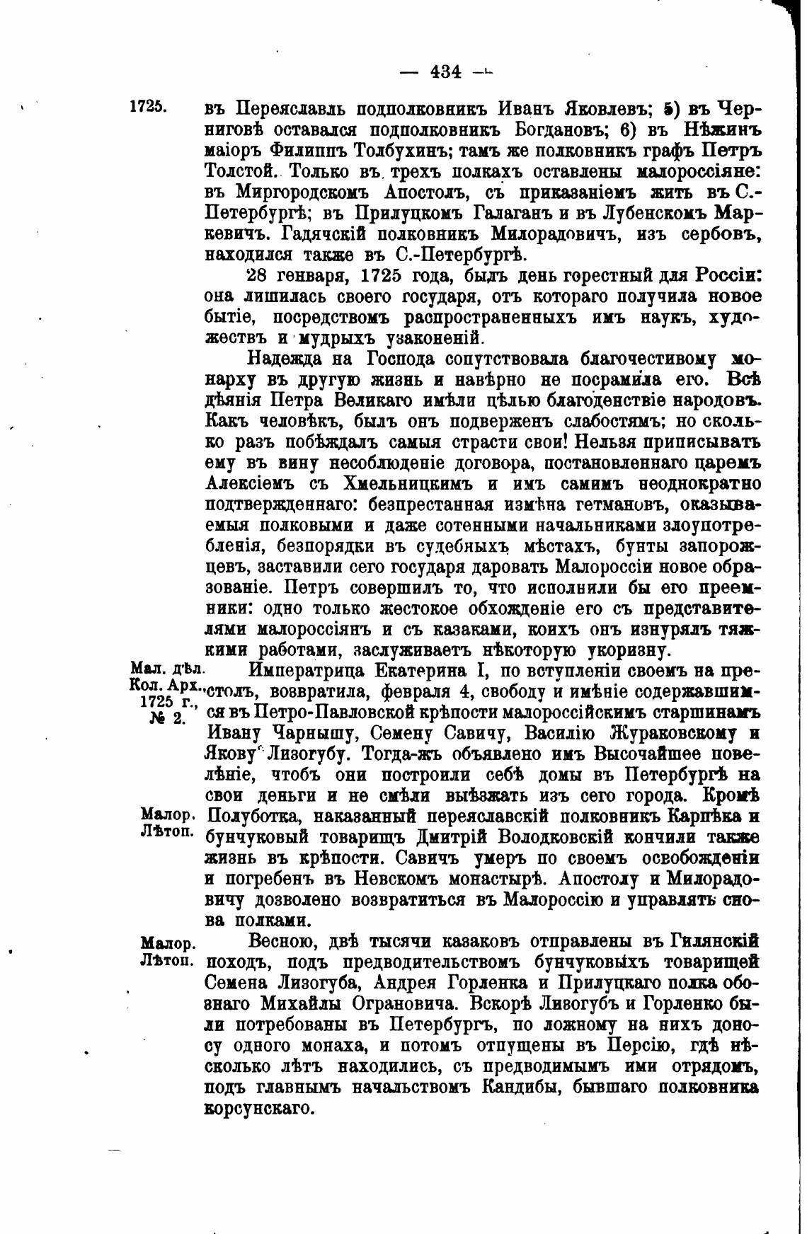 28 генваря, 1725 года, быдъ день горестный для PocciH: