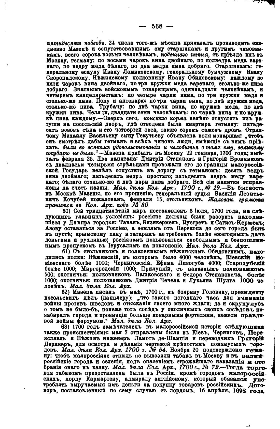 62) Мазепа писвлъ въ мав, 17H г., кь боярину Головину, президенч
