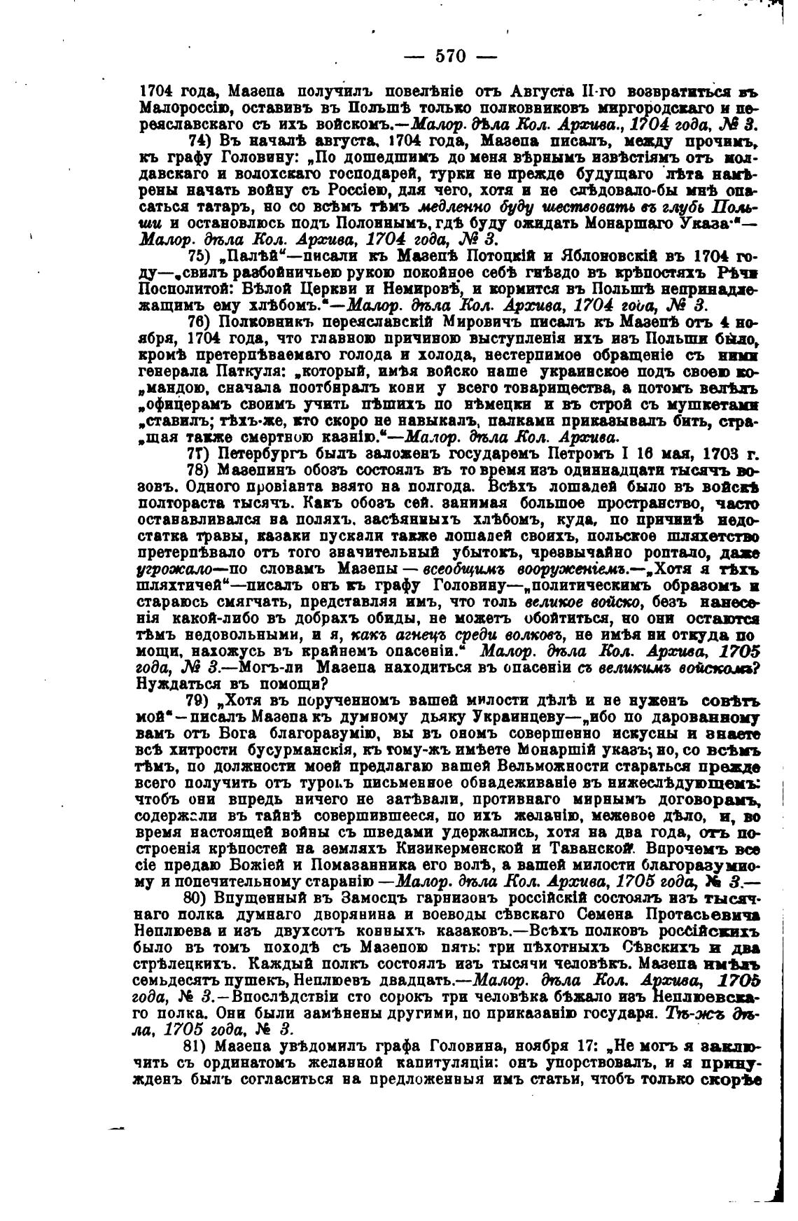 74) Въ начал•В августа, 1704 года, Мазепа письдъ, между прочимъ,
