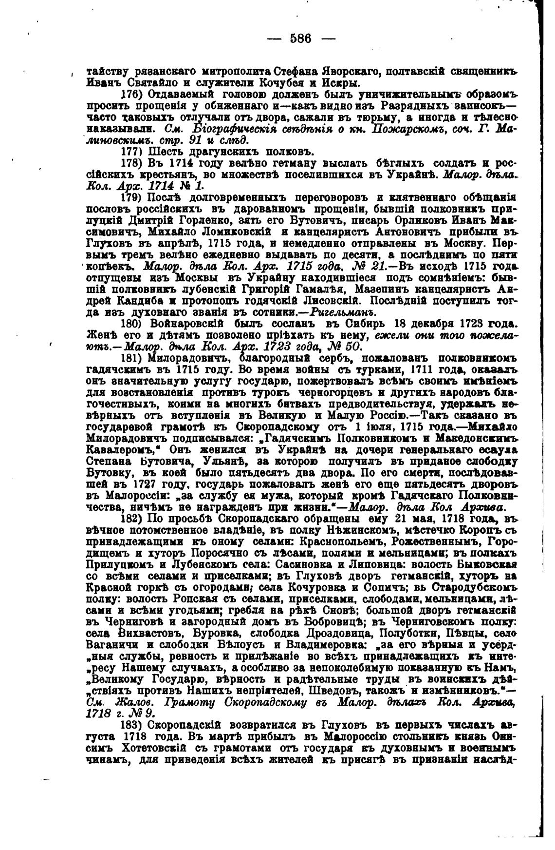 182) По просьб•в Скоропадсваго обращены ему 21 мая, 1718 года, въ