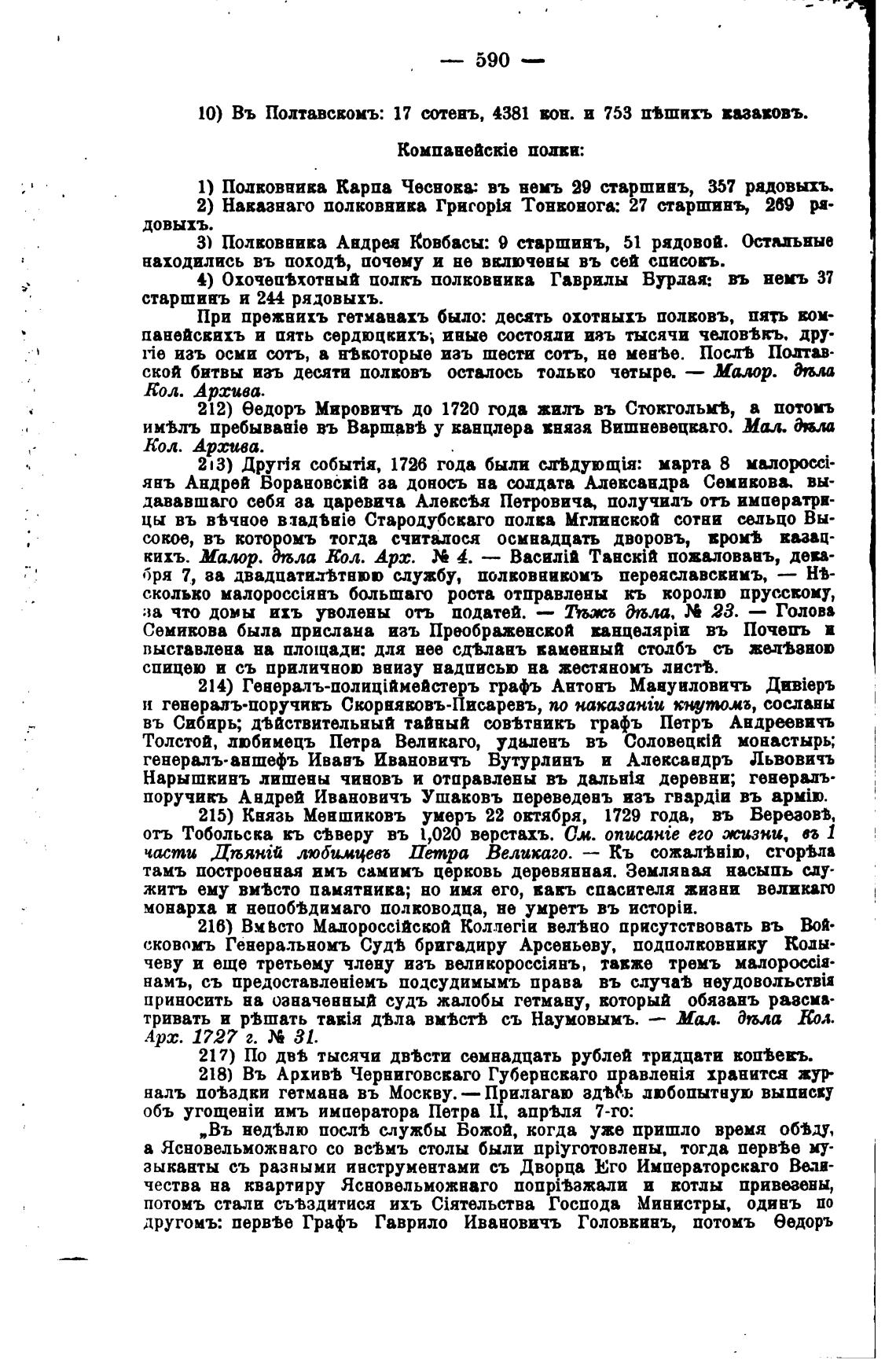 215) Князь Меашиковъ умерь 22 октября, 1729 года, въ Верезовћ
