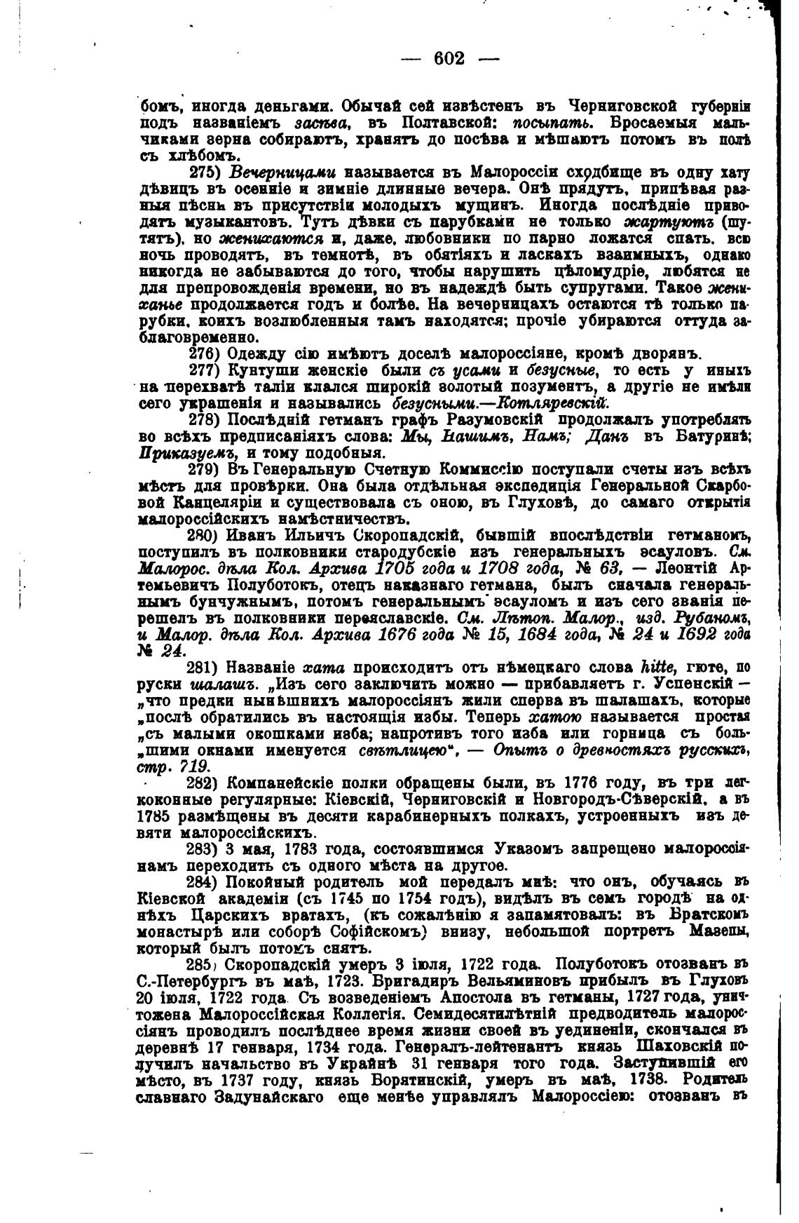 285) Скоропадск1й умерь З 1722 года. Полуботовъ отозвань въ