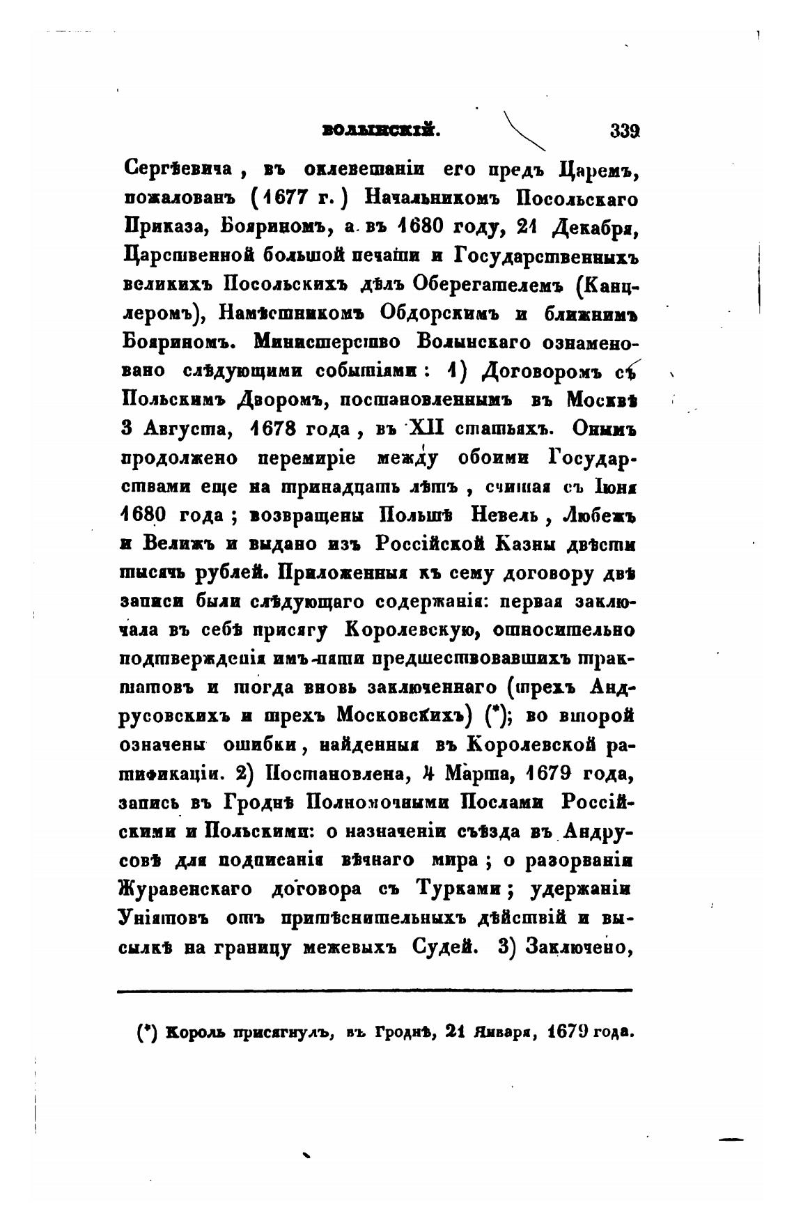 ( • ) Корь присягнулъ, въ Гродн•, 21 Январи, 1679 года.