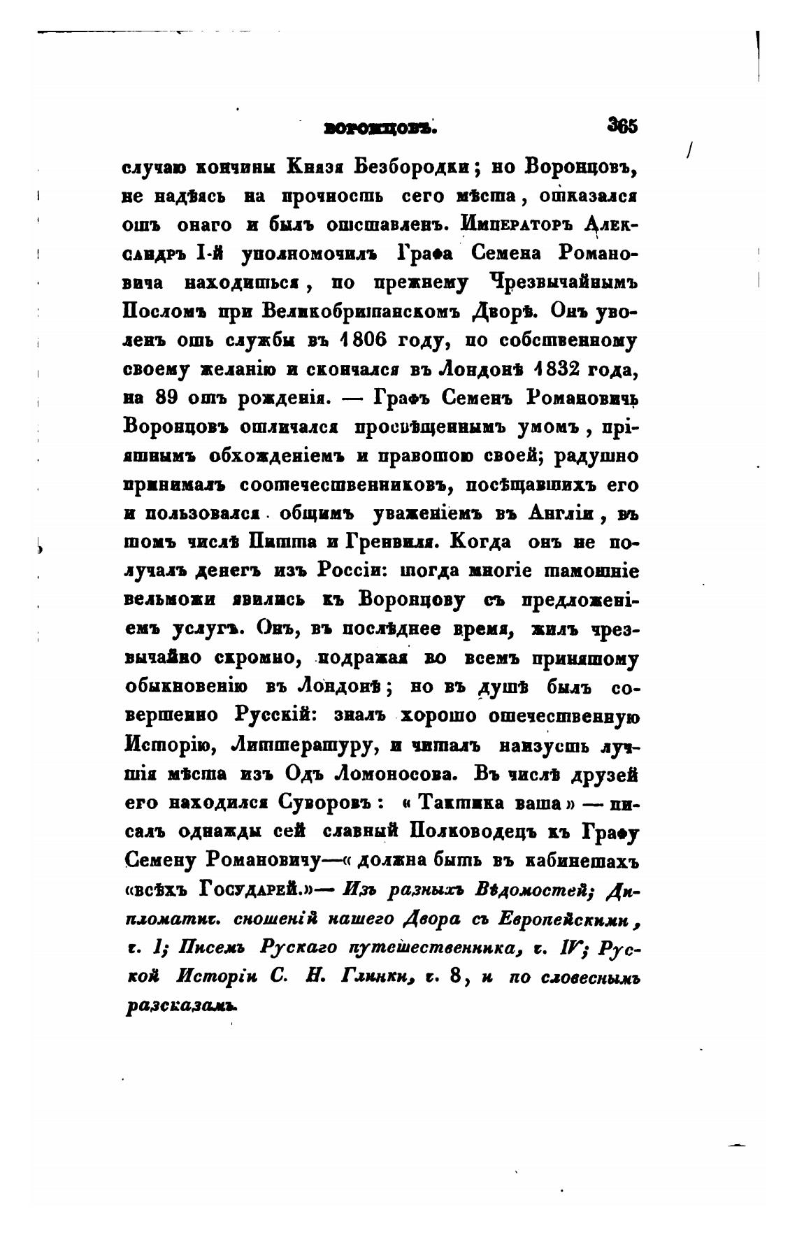 своему и скончался въ Лондон“ 4 832 года,