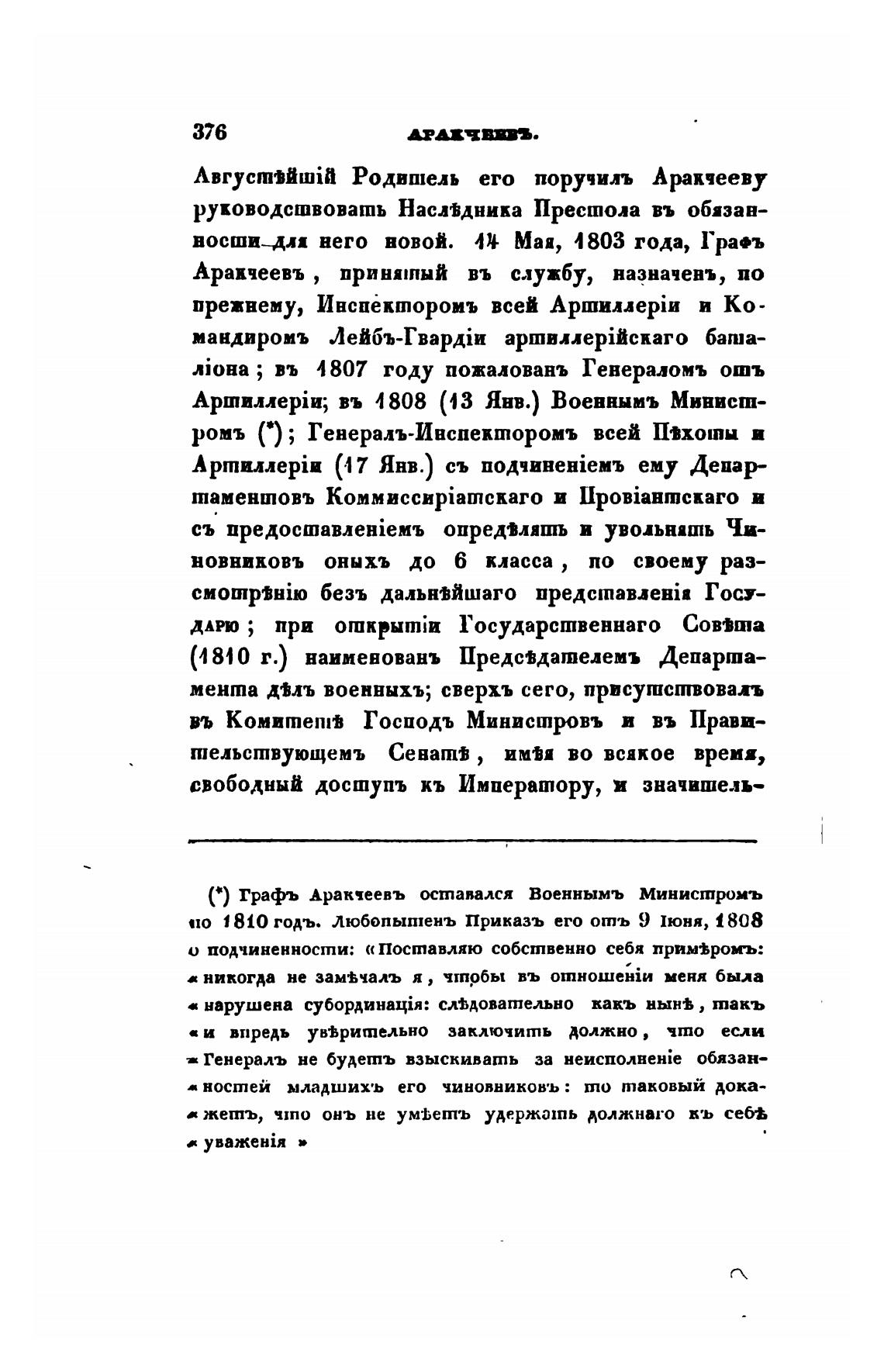 С) Графъ Аракчеевъ оставался Военнымъ Министромъ