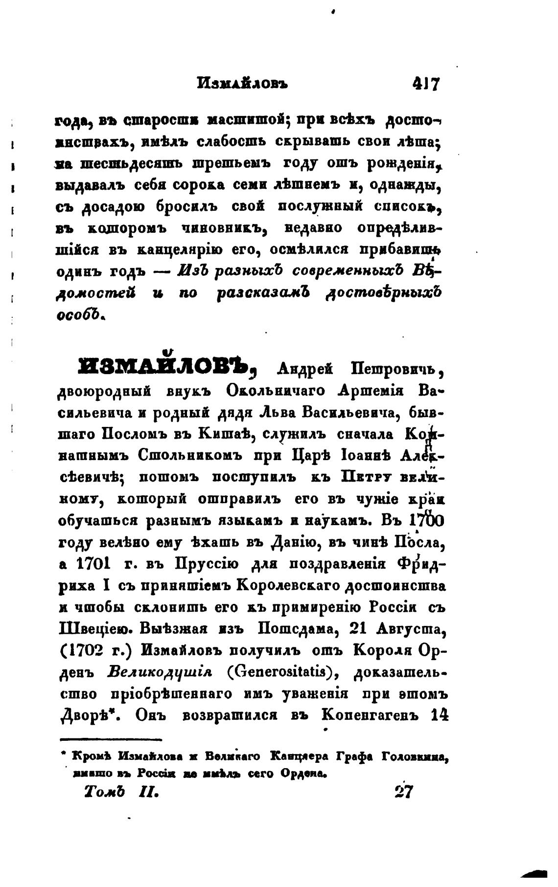 (1702 г.) Измайловъ получилъ отъ Короля Ор-