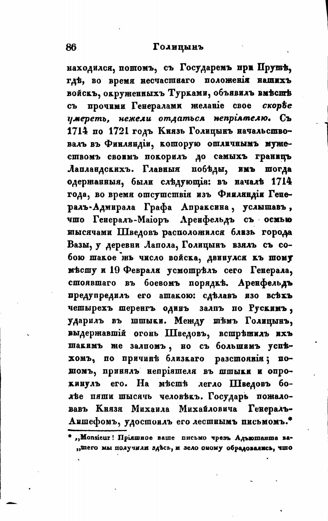 Вазы, у деревни Лапола, Голицынъ взялъ съ со-