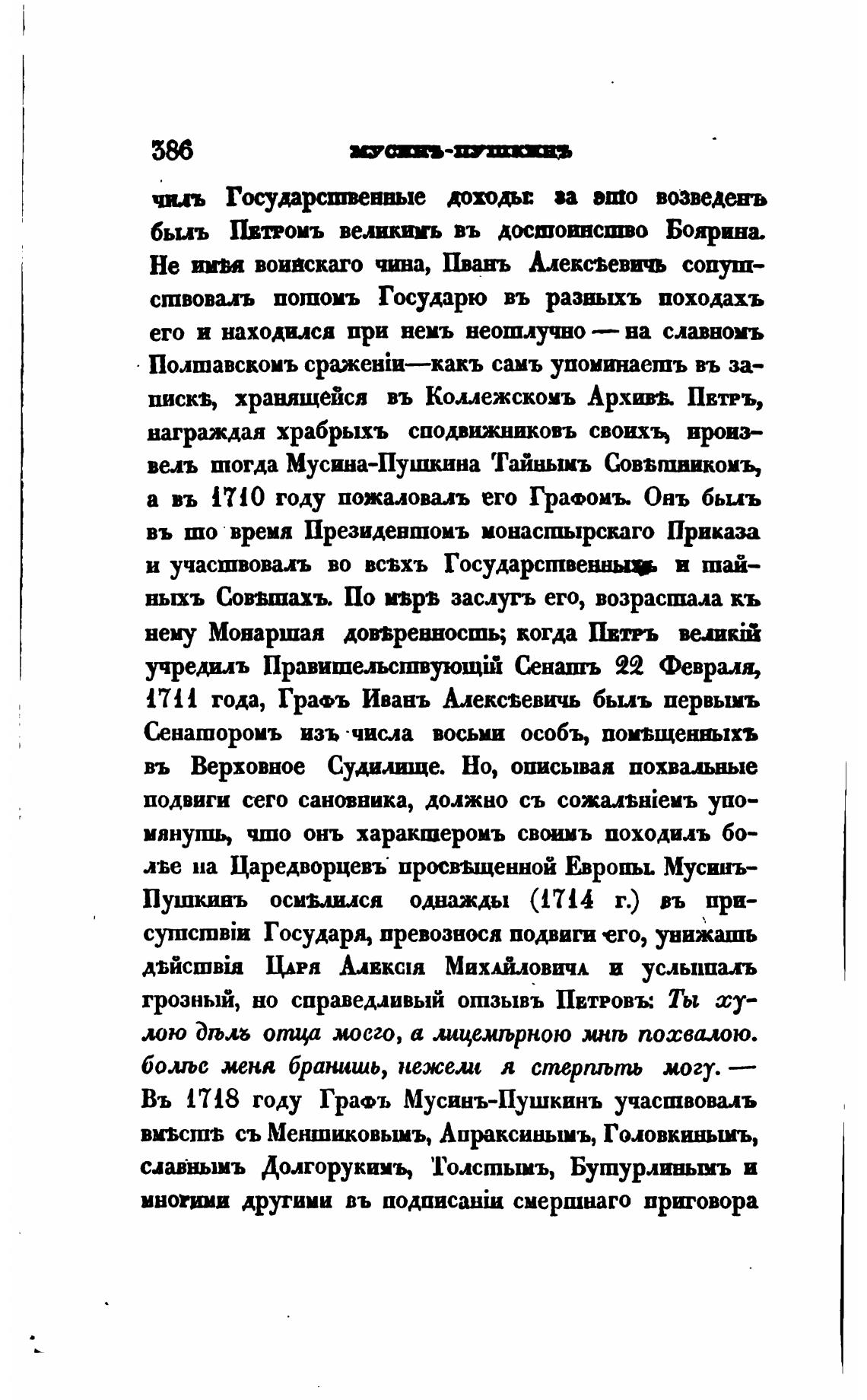 Въ 1718 году Гра•ъ Мусинъ-Пушкинъ участвовалъ