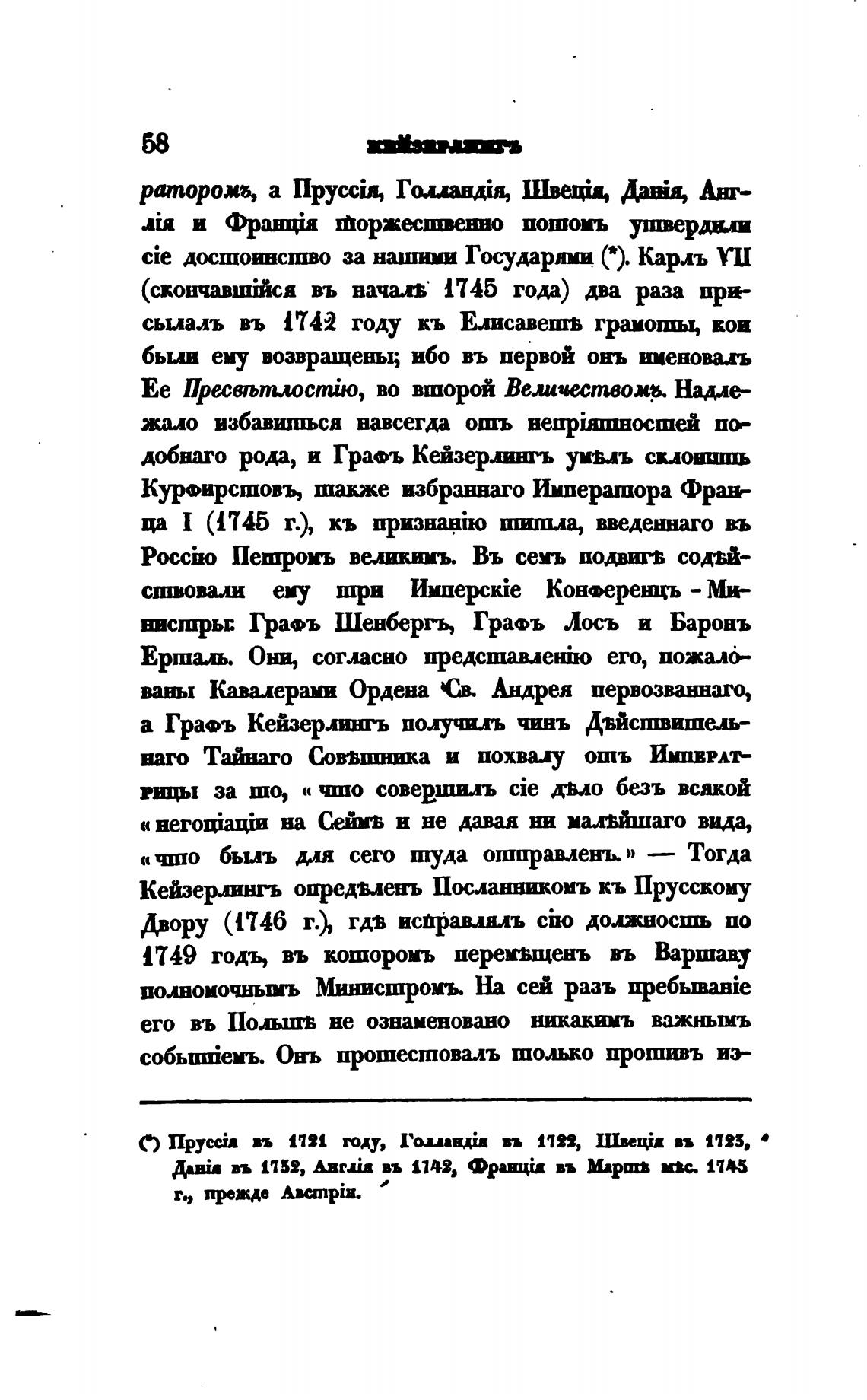 Кейзерлингь опредыенъ Посланникомъ кь Прусскому