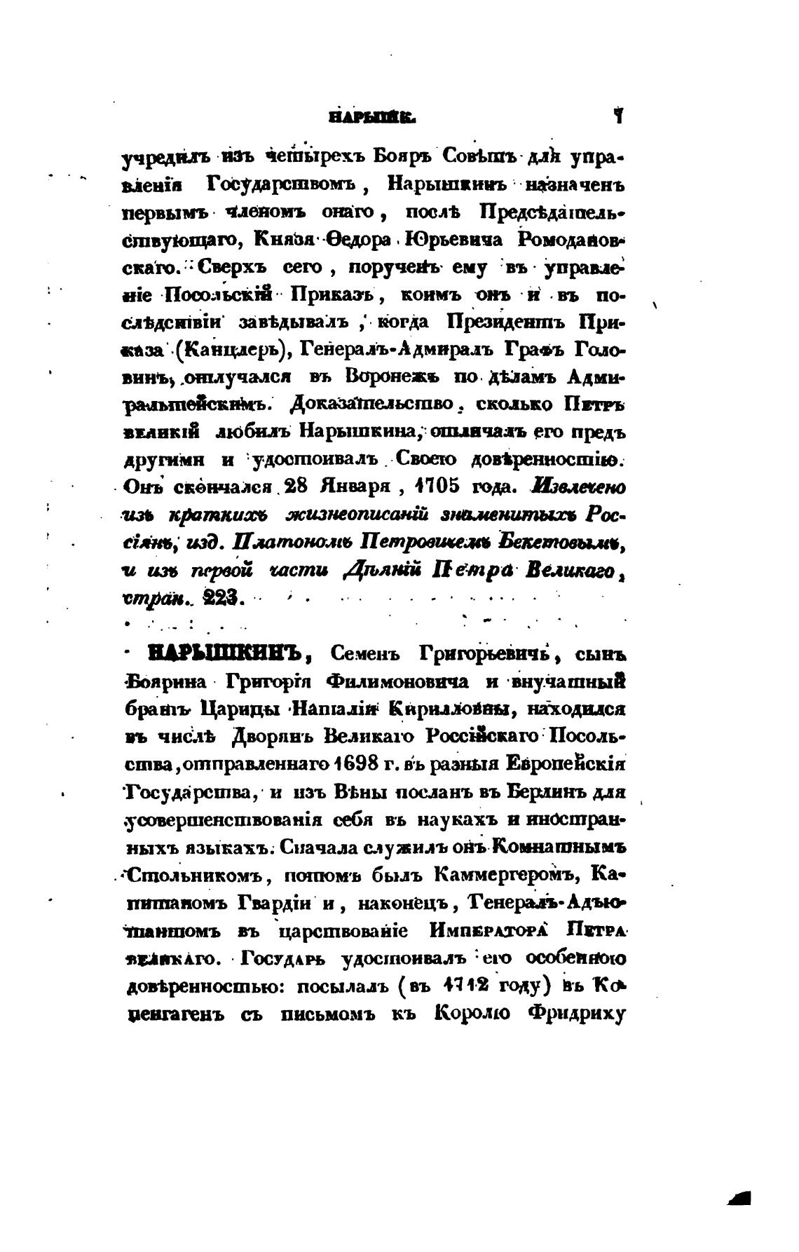 ВИНКА любилъ Нарышкина; ошлвча;цъ прдъ