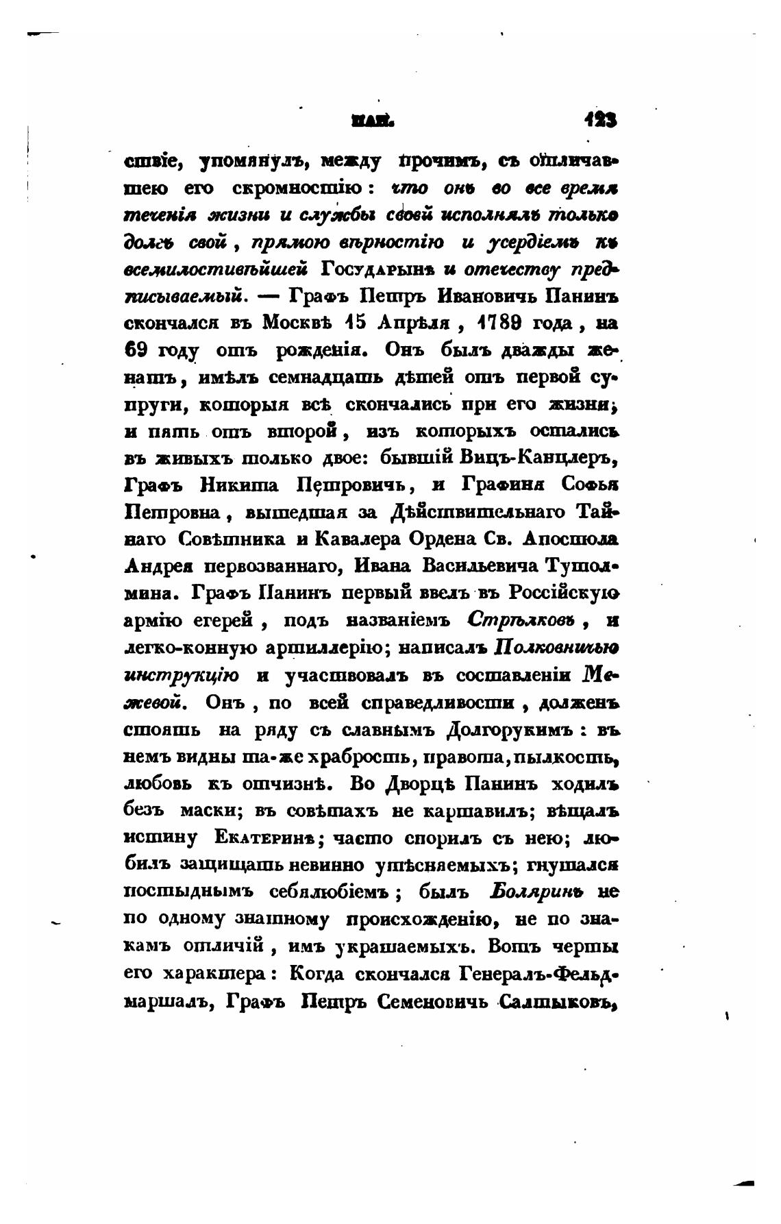 писываемый. — Гра•ъ Пептрь Ивановичь Панинъ