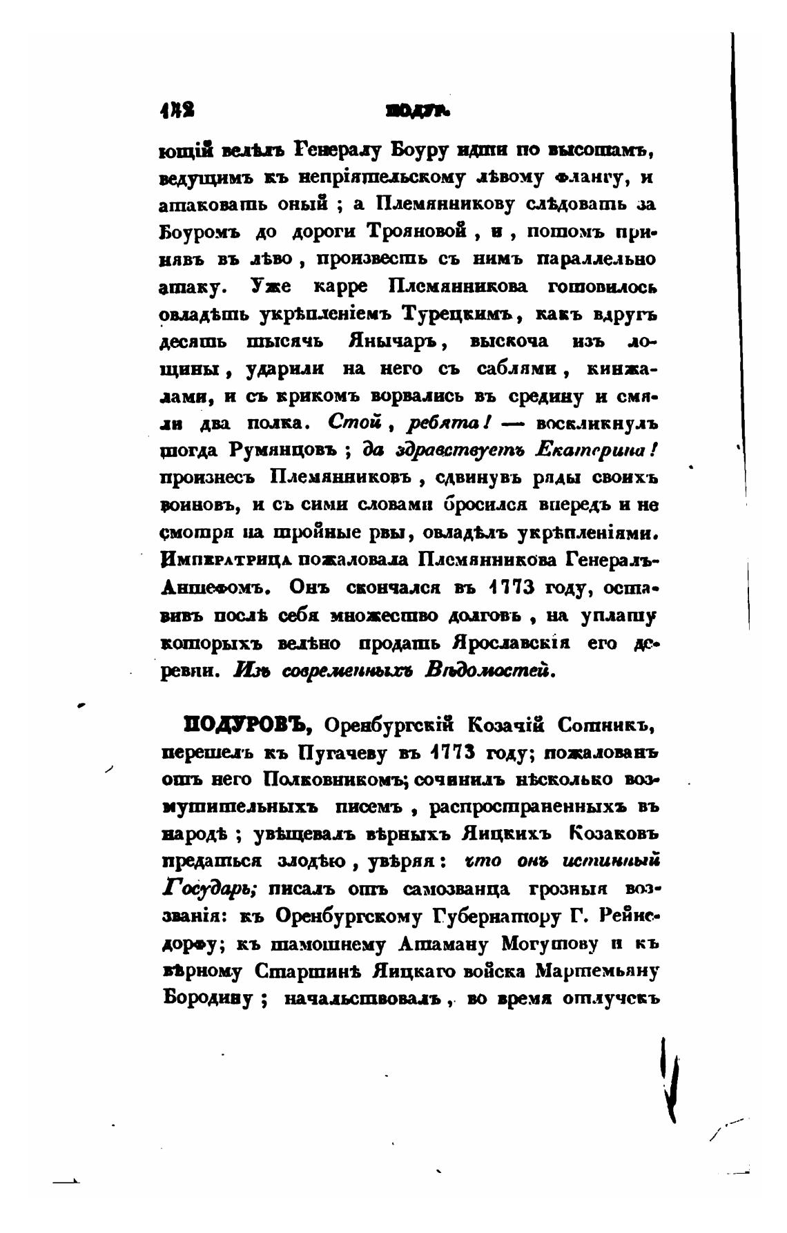 першаа•ь кь Пугачеву въ 4173 ходу; пожалопвъ