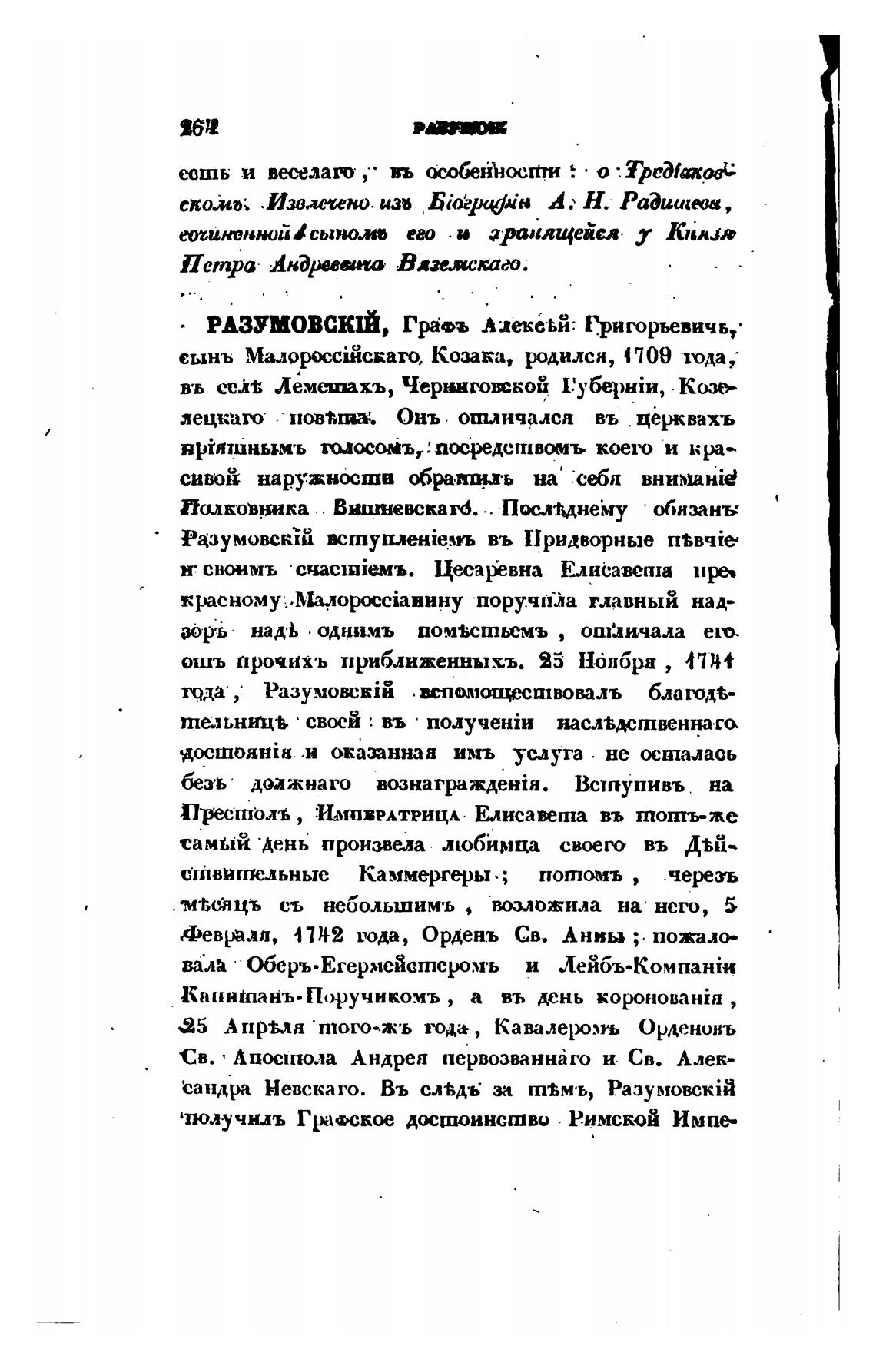 РАЗУМОВСКIЙ, Гра•ъ Алеке•ЬЙ. Григорьевичь,