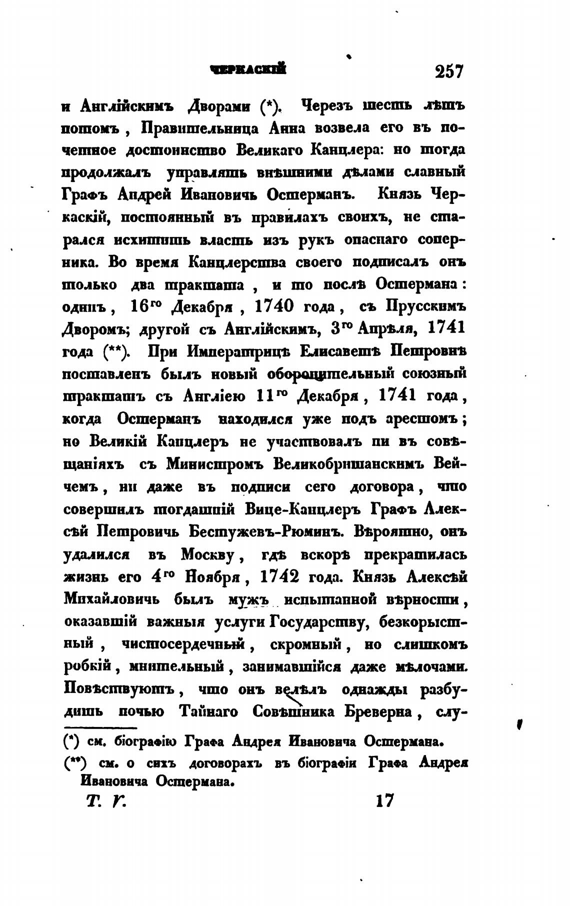Гра•ъ Андрей Ивановичь Осшерманъ. Князь Чер-