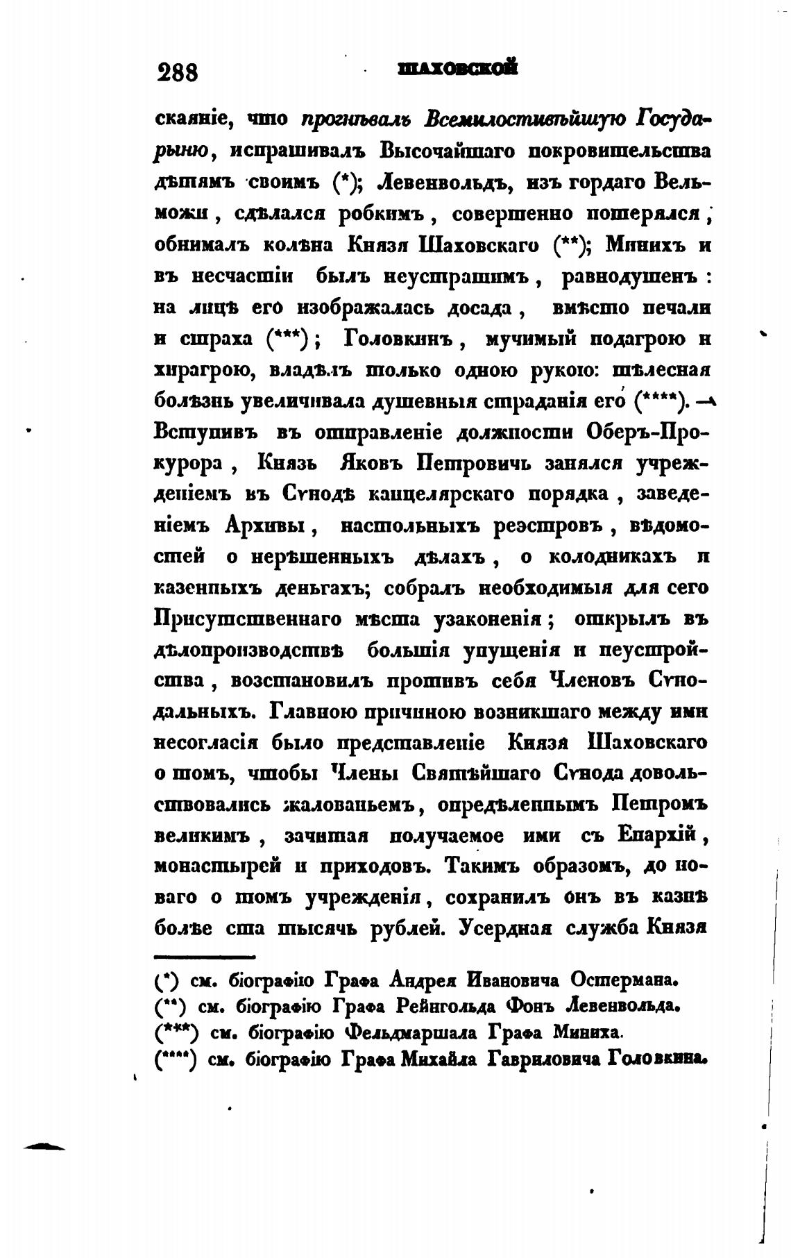 обнималъ кол•вна Князя Шаховскаго ( • й); Минихъ и
