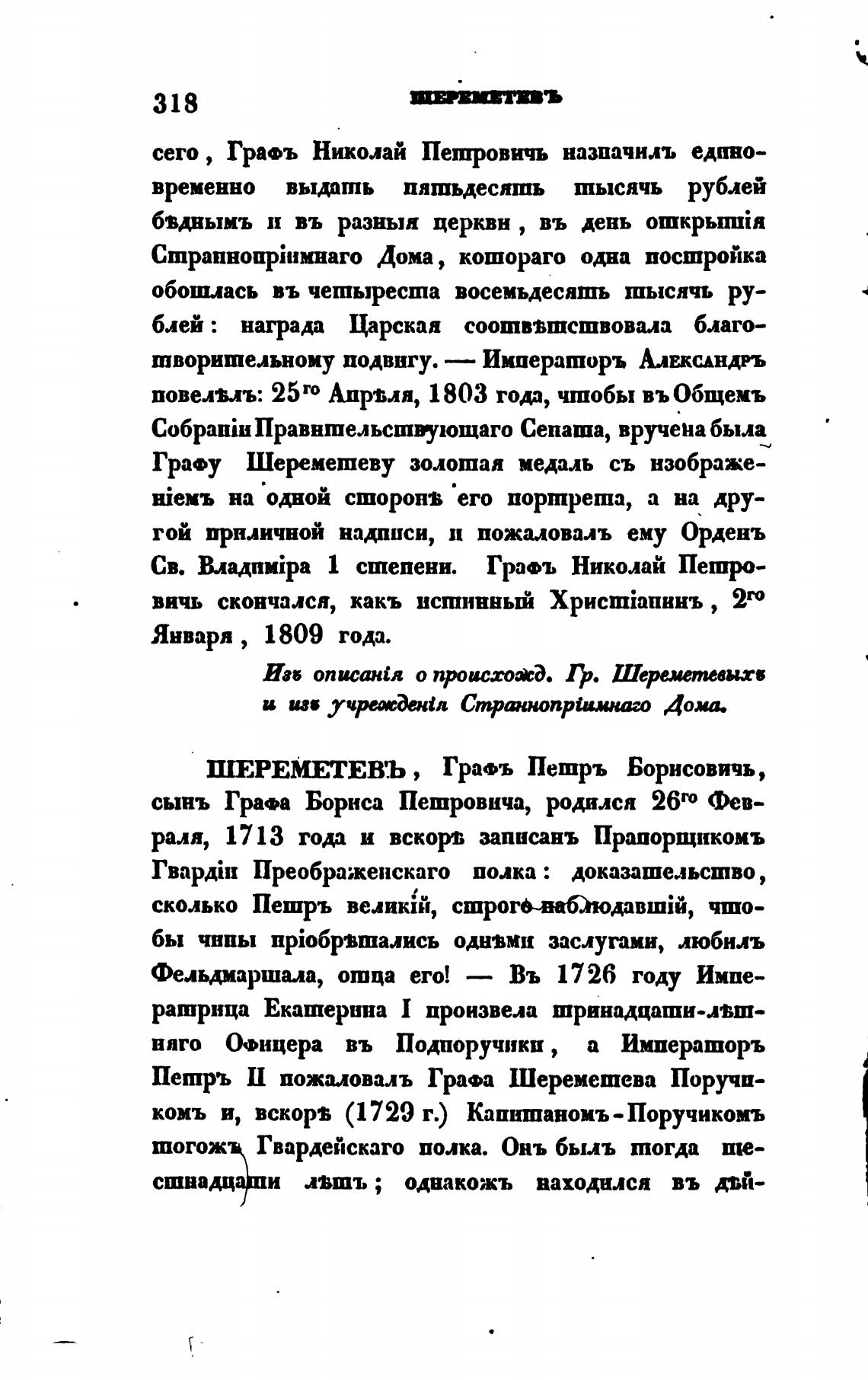 Пешръ П пожаловалъ Графа Шереметева Поручи-
