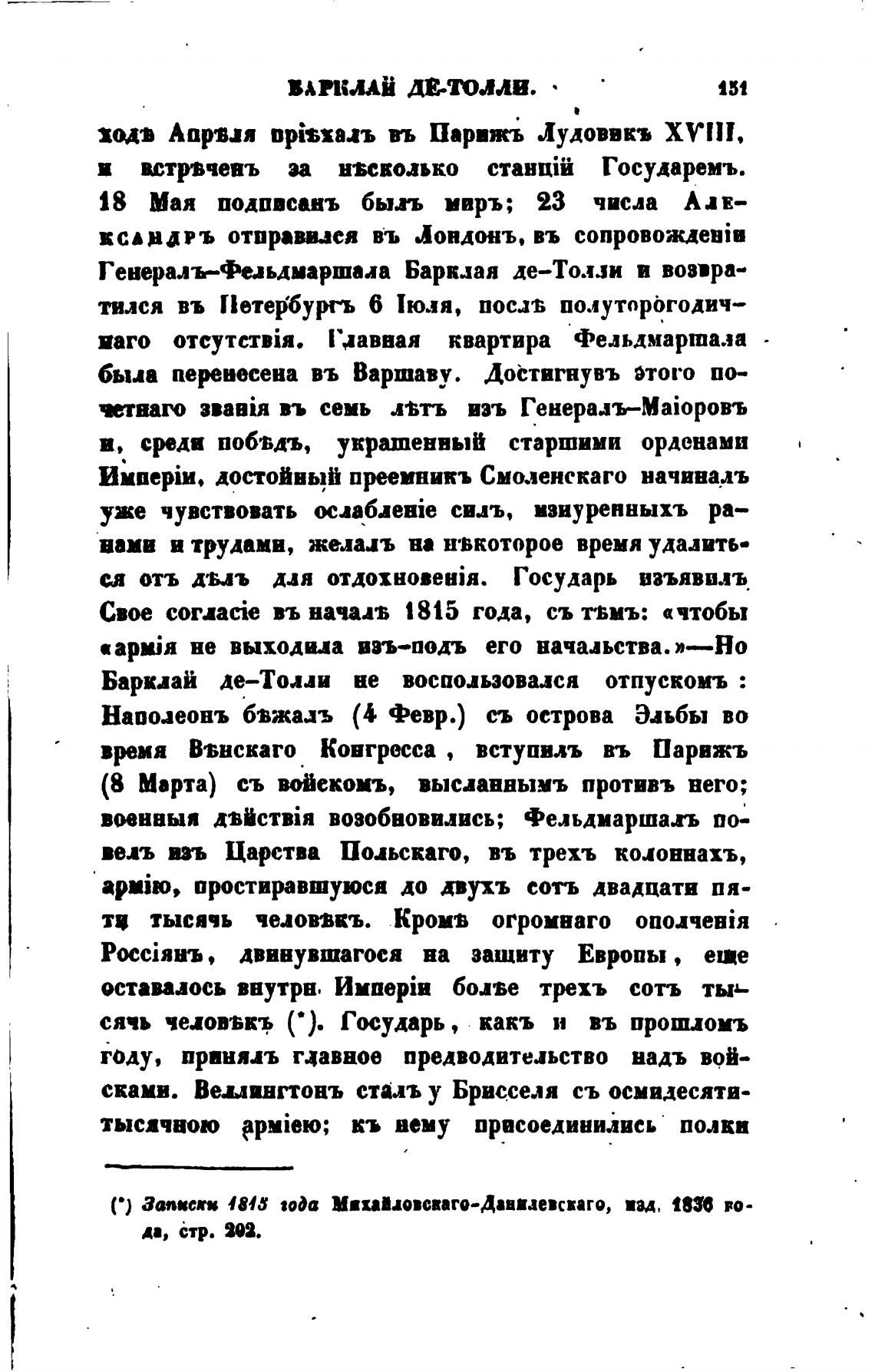 Генералъ—феаьднаршала Барклая де—Толзи в возвра-