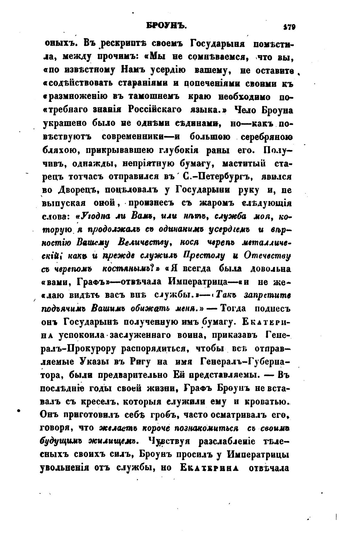 свыхъ своихъ сихь, Броунъ просилъ у Императрицы