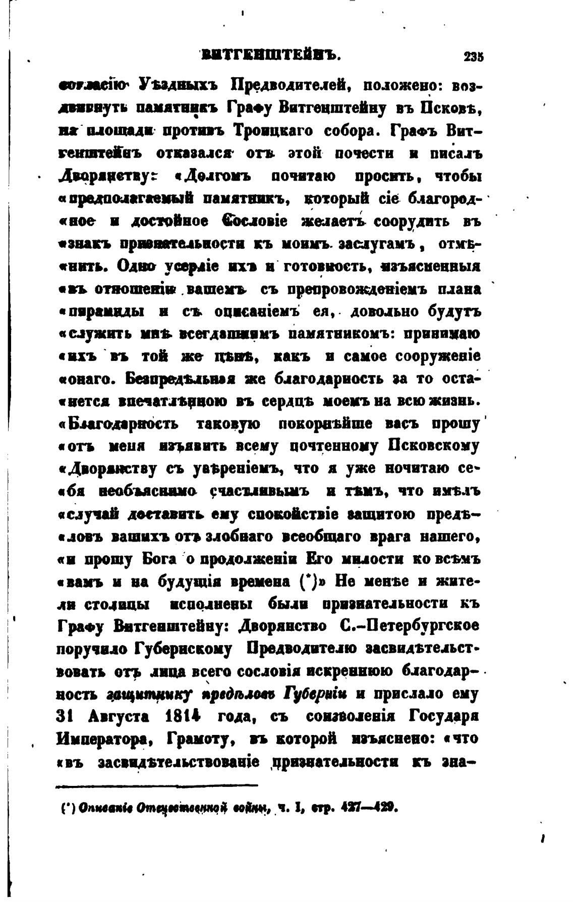 диввутн памятвчкъ Гра•у ВитгецштеИиу въ Псковв,