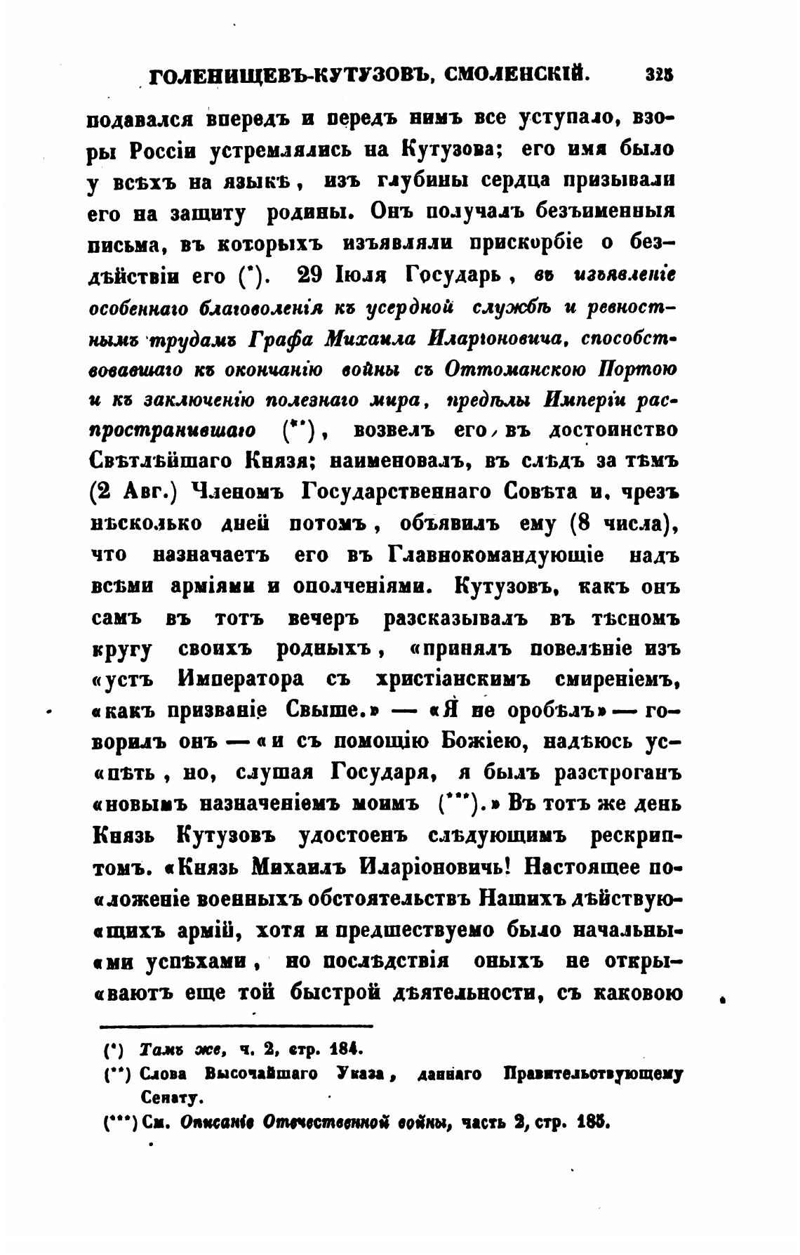 Князь Кутузовъ удостоенъ слыующимъ рескрип-