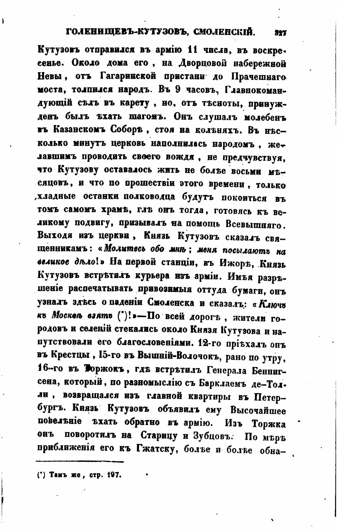 Выходя изъ церкви , Князь Кутузовъ сказал свя—