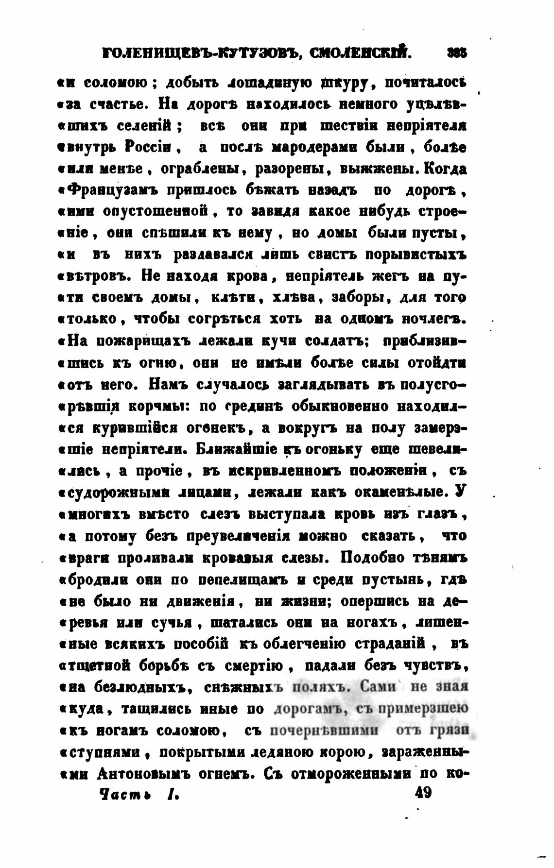 «На пожарищахъ лежив кучи соадатъ; првьизив—