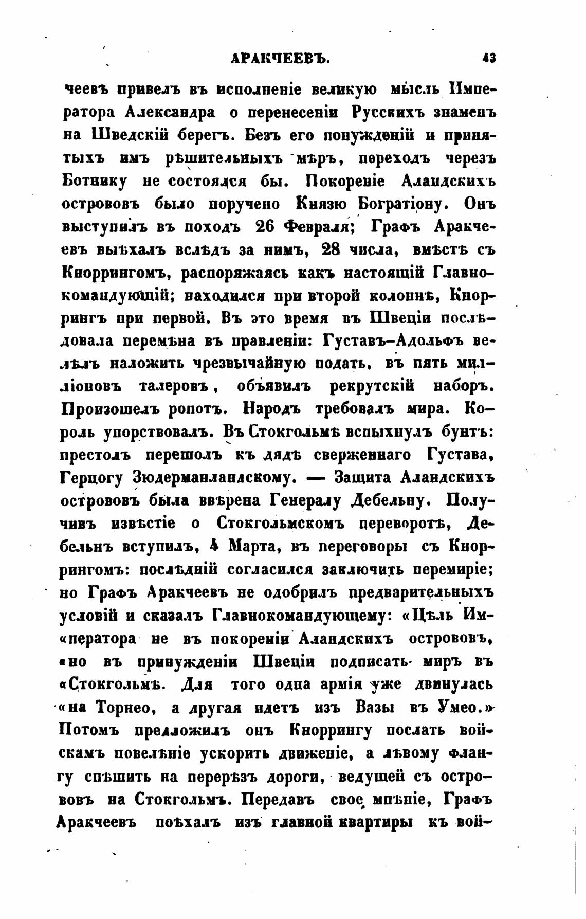 выступи:иъ въ походъ 26 Феврия; Гра•ъ Аракче-