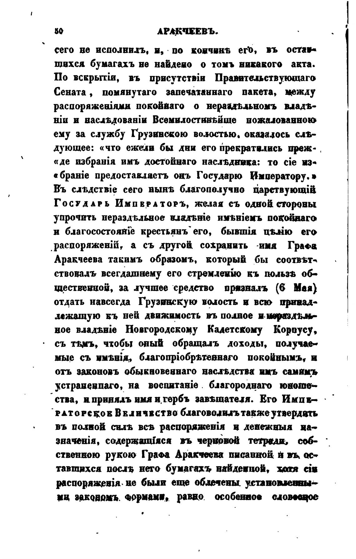 ственною рукою Графа Аракчпва писанной
