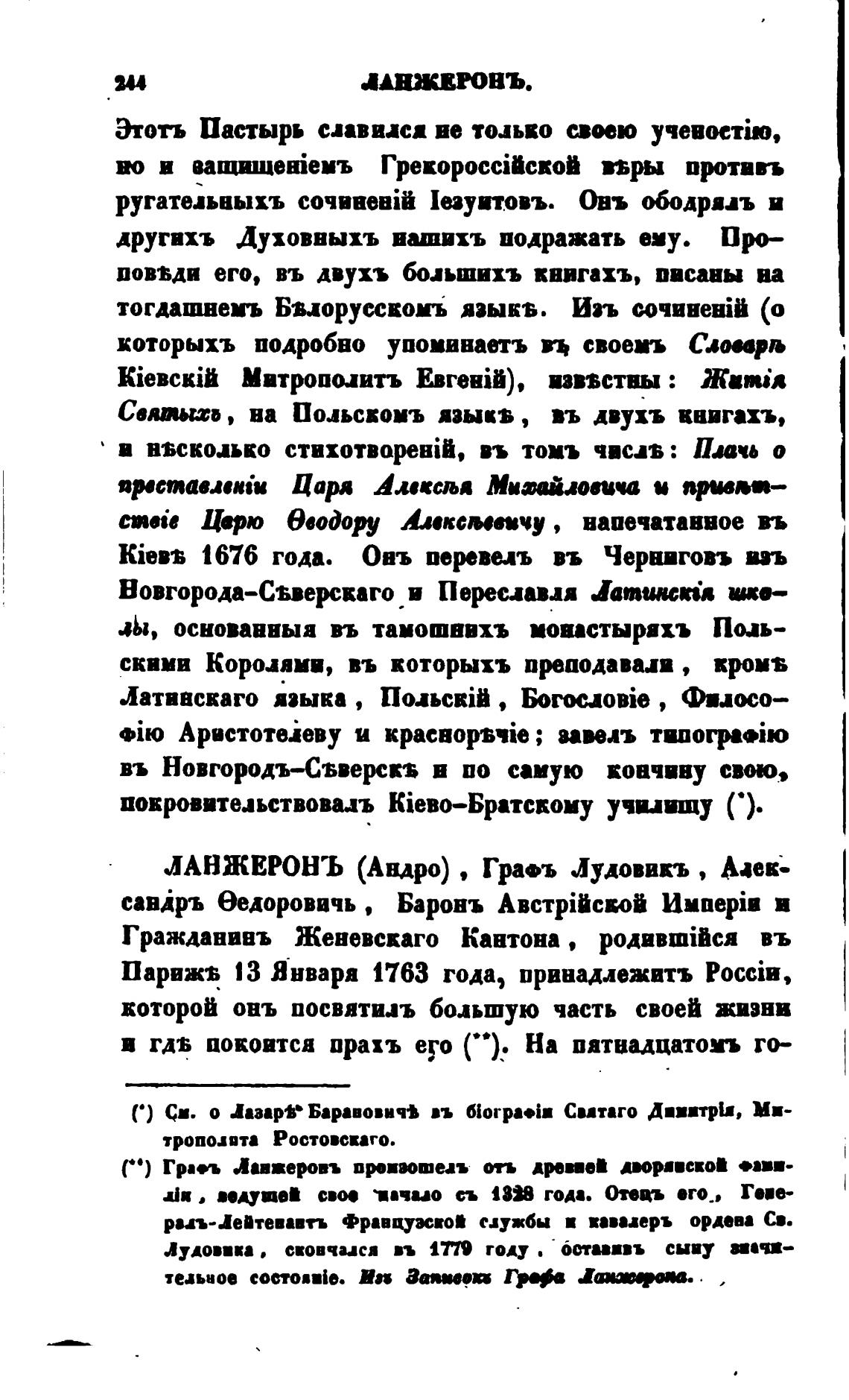 ЛАНЖЕРОНЪ (Андро) , Гра•ъ Лудовикъ , Даек.