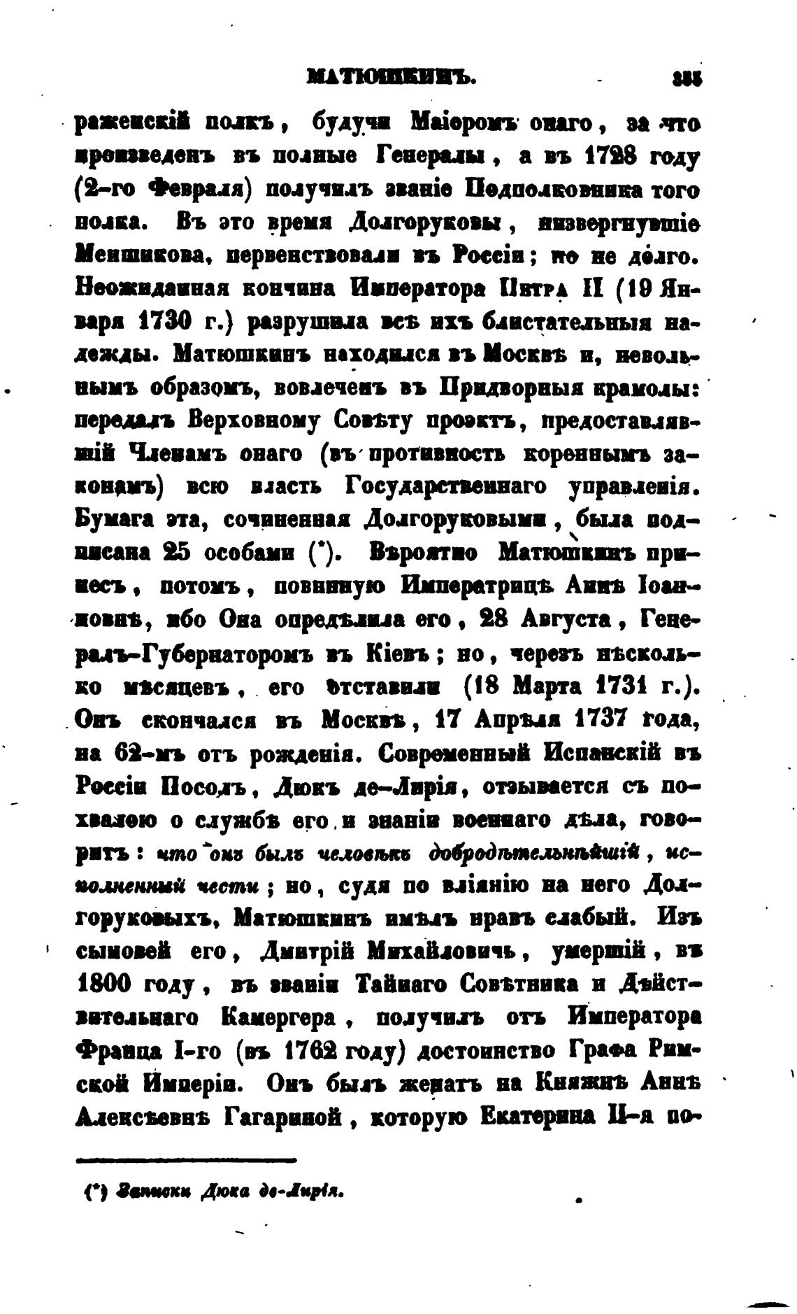 врвпведенъ въ полные Генеры , а въ 1728 году